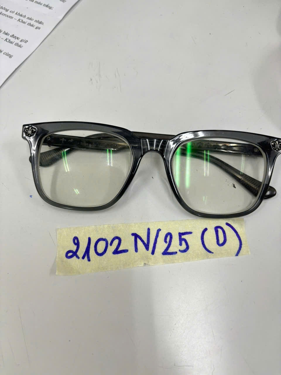 Ngày tiếp nhận: 02/12/2025 Mã hồ sơ: 2102N2025D Mô tả: 01 mắt kính cận nhựa trong màu đen, không rõ hiệu. |