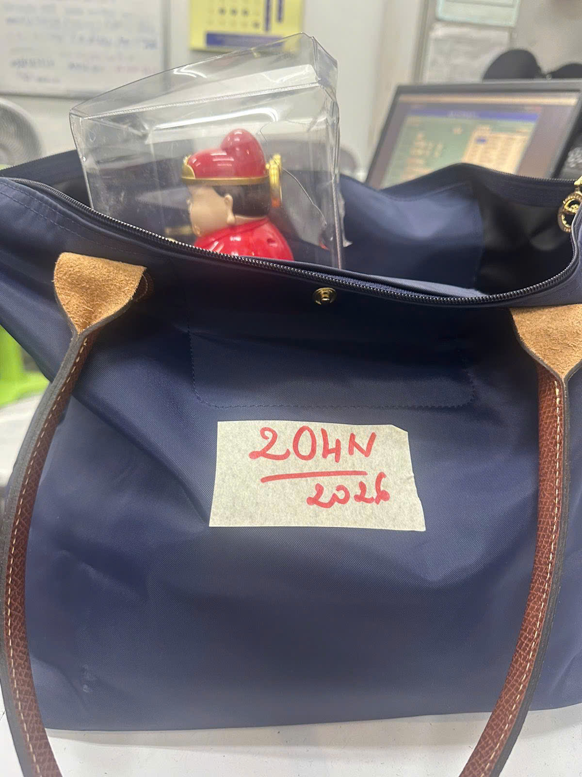Ngày tiếp nhận: 05/02/2026 Mã hồ sơ: 204N2026 Mô tả: 01 túi xách vải màu xanh đen chứa : 01 tượng lưu niệm, vật dụng cá nhân. |