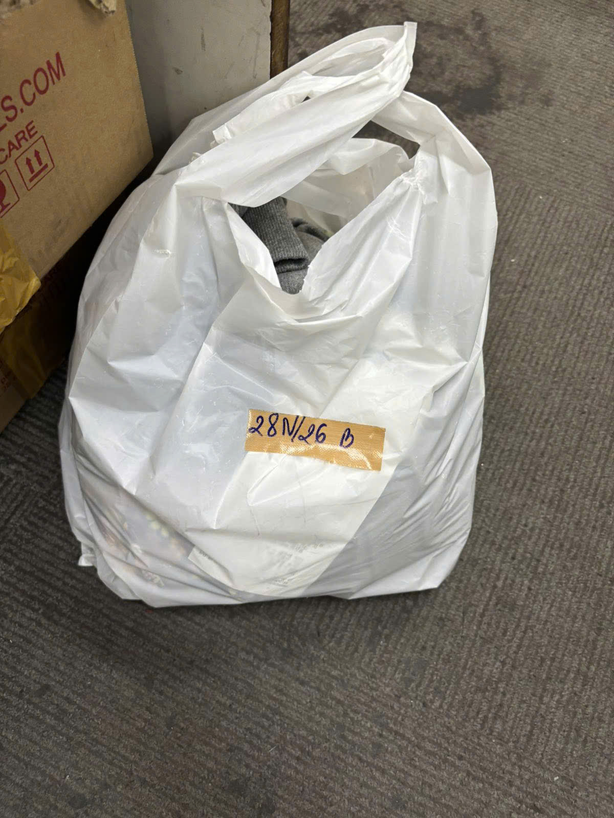 Ngày tiếp nhận: 07/01/2026 Mã hồ sơ: 28N2025B Mô tả: 01 túi đồ bên trong có quần áo cũ. |