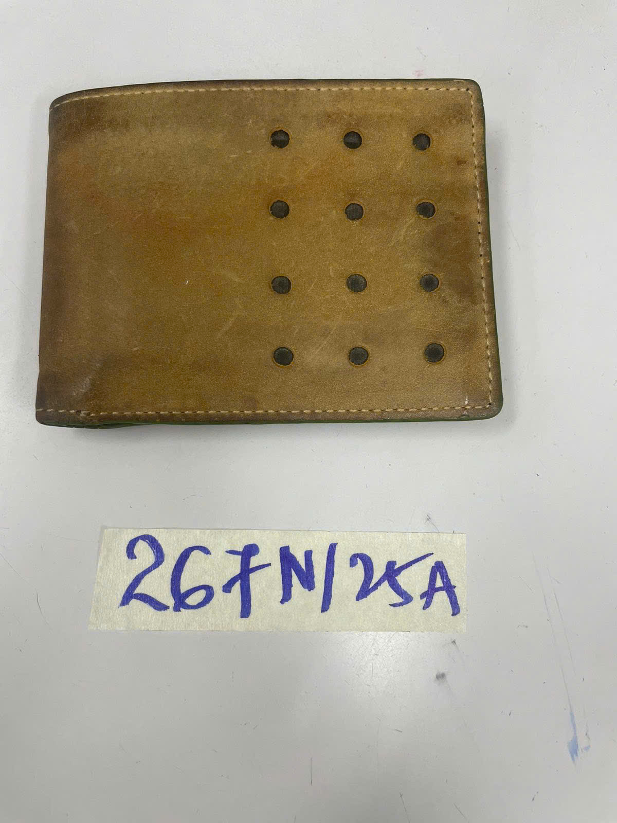 Ngày tiếp nhận: 07/02/2025 Mã hồ sơ: 267N2025A Mô tả: 01 ví màu nâu có chữ J.FOLD, bên trong có 2000 PISO gồm 02 (hai) tờ mệnh giá 1000 PISO, 03 thẻ cá nhân gồm mang tên RENIERE JOHN DAMAMA AD MAGPADE. |