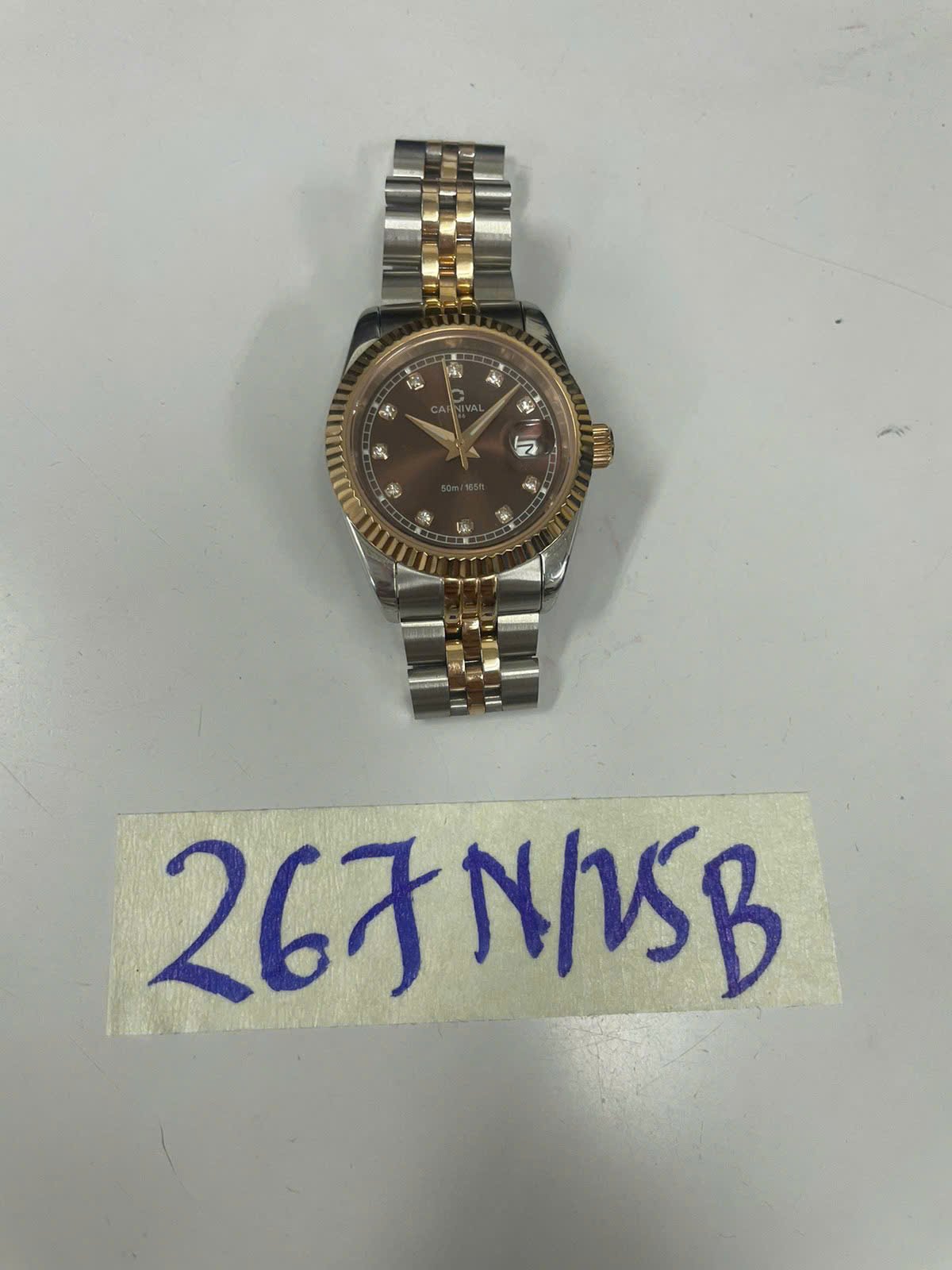 Ngày tiếp nhận: 07/02/2025 Mã hồ sơ: 267N2025B Mô tả: 01 đồng hồ kim loại mặt tròn có chữ "CARNTVAL". |