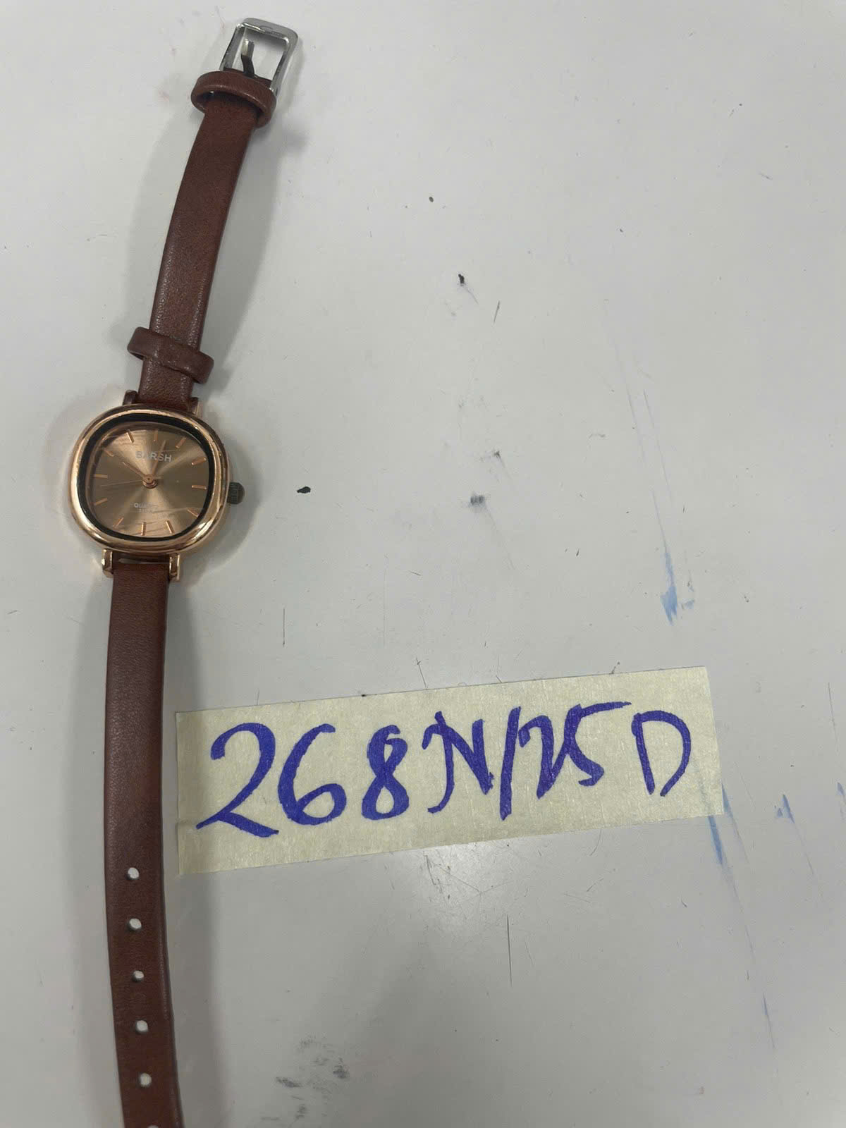 Ngày tiếp nhận: 07/02/2025 Mã hồ sơ: 268N2025D Mô tả: 01 đồng hồ màu vàng có chữ "BARSH, dây đá màu nâu. |