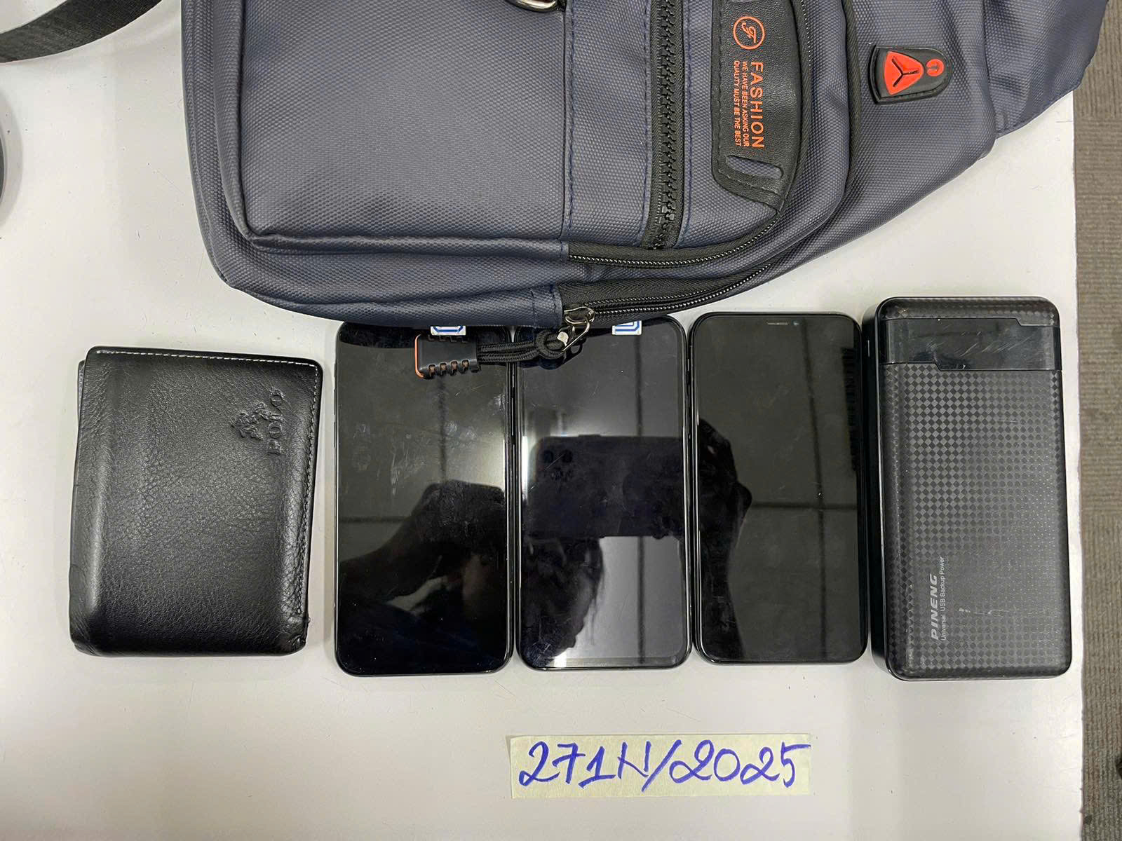 Ngày tiếp nhận: 07/02/2025 Mã hồ sơ: 271N2025 Mô tả: 01 Túi đeo chéo màu xanh đậm bên trong có 01 ví da màu đen bên trong có một căn cước công dân tên Nguyễn Công Danh, 23.000 Việt Nam đồng và 2 đô la Mỹ, 03 điện thoại cảm ứng màu đen iPhone, 01 đồng hồ đeo tay có chữ DOUKOUmàu đen, 01 tai nghe không dây màu đen có chữ AVA+, 01 máy cạo râu cầm tay màu đen và 01 sạc dự phòng màu đen tất cả đều qua sử dụng. |
