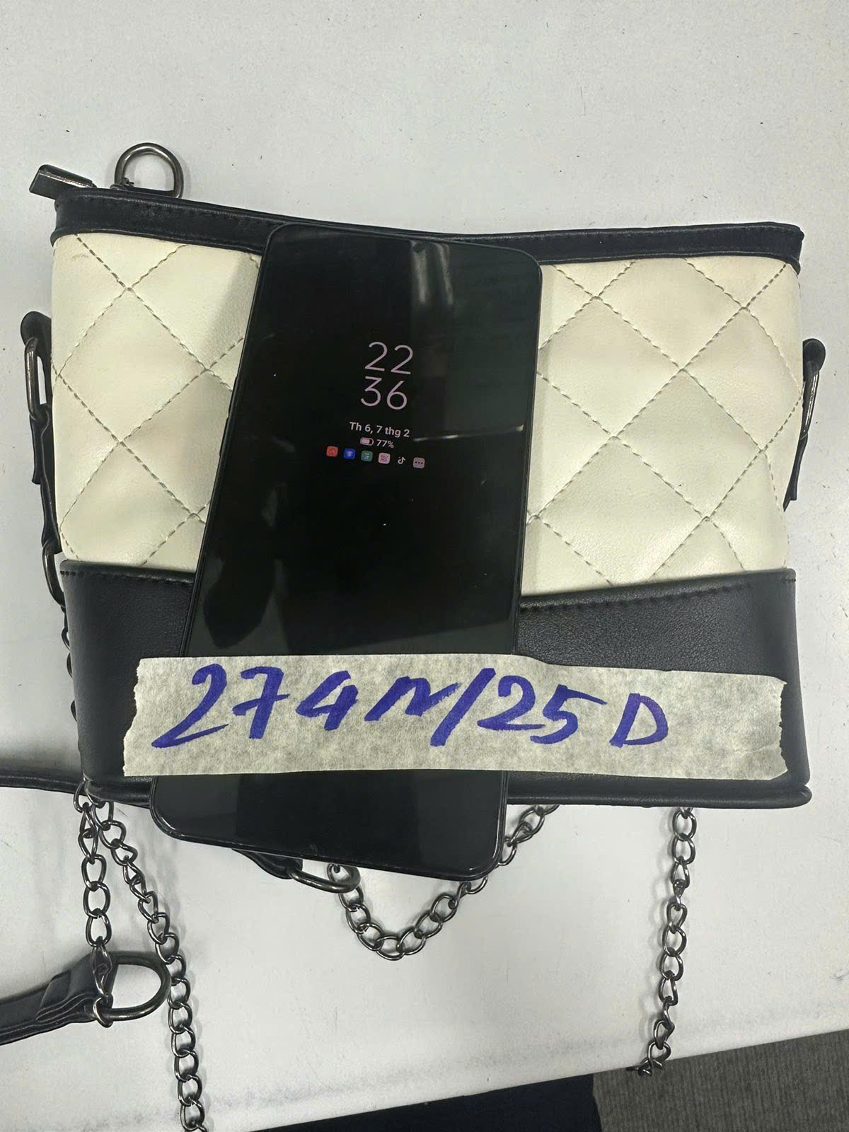 Ngày tiếp nhận: 07/02/2025 Mã hồ sơ: 274N2025D Mô tả: 01 Túi nữ trắng đen trong có 1 điện thoại có chữ "OPPO", đồ cá nhân. |