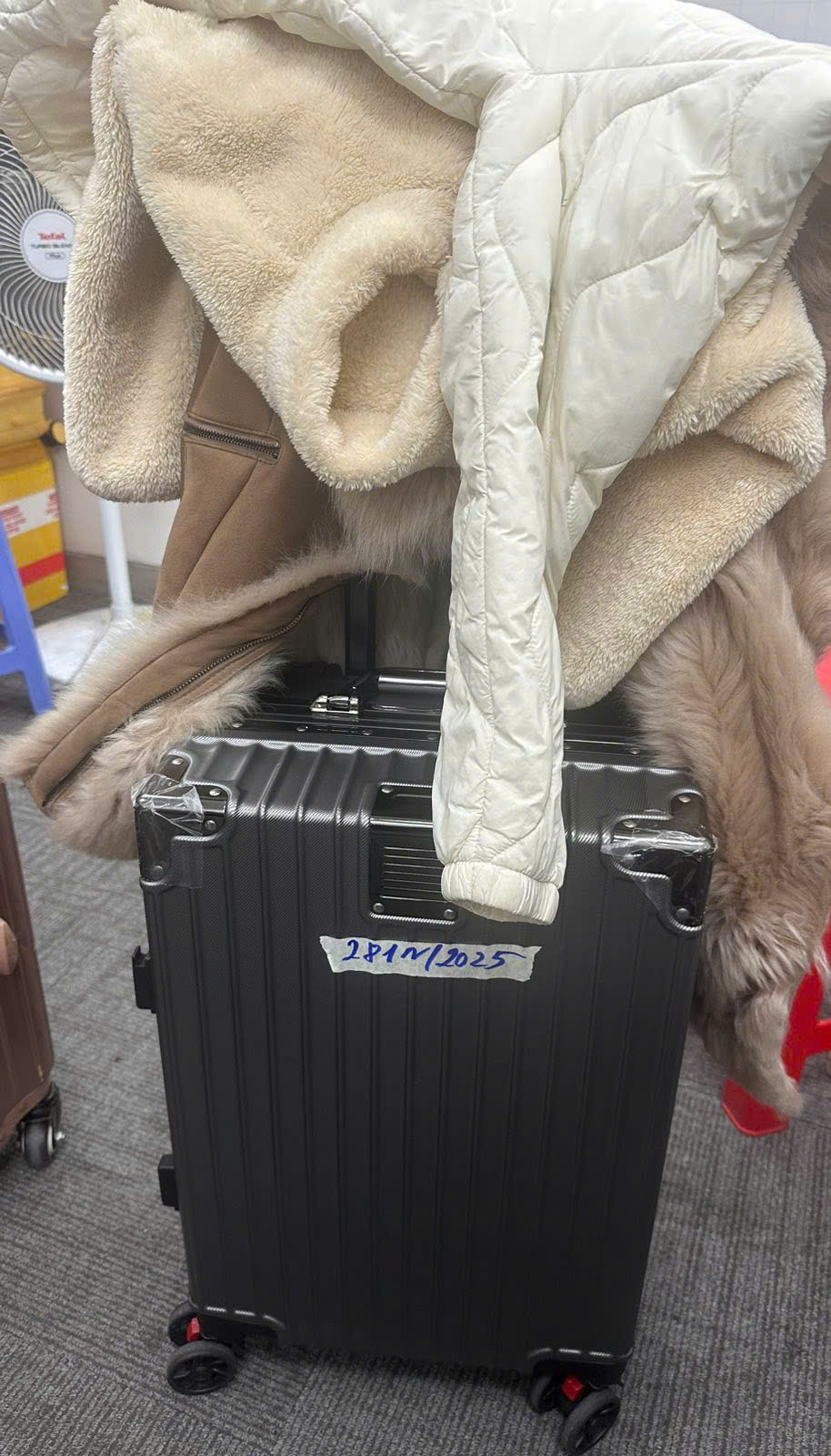 Ngày tiếp nhận: 09/02/2025 Mã hồ sơ: 281N2025 Mô tả: 01 valy kéo bằng nhựa màu xám có khóa và 01 áo khoác vải màu vàng. |