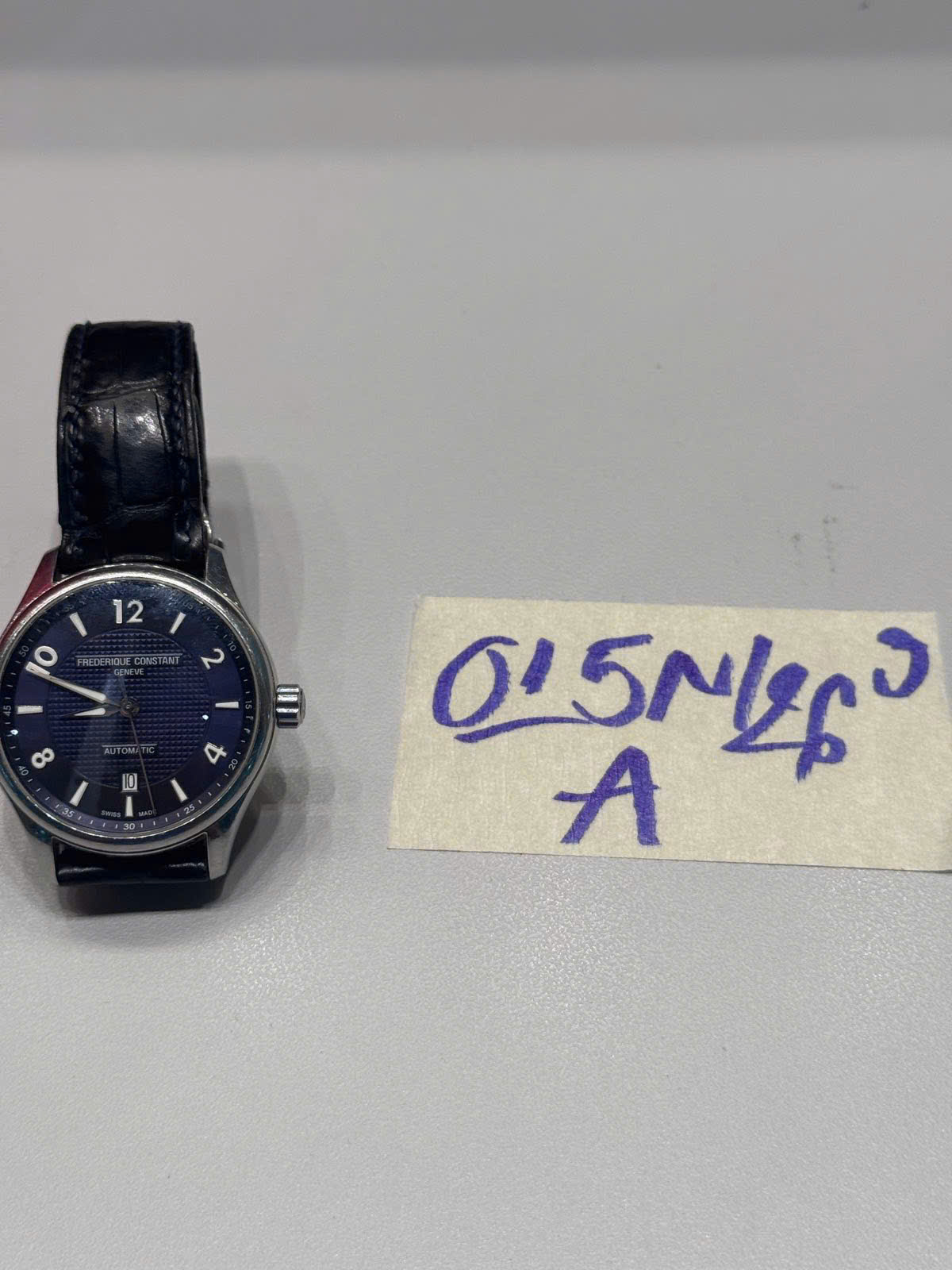 Ngày tiếp nhận: 10/01/2026 Mã hồ sơ: 15N2026A Mô tả: 01 đồng hồ day da đen FREDERIUE CONSTANT. |