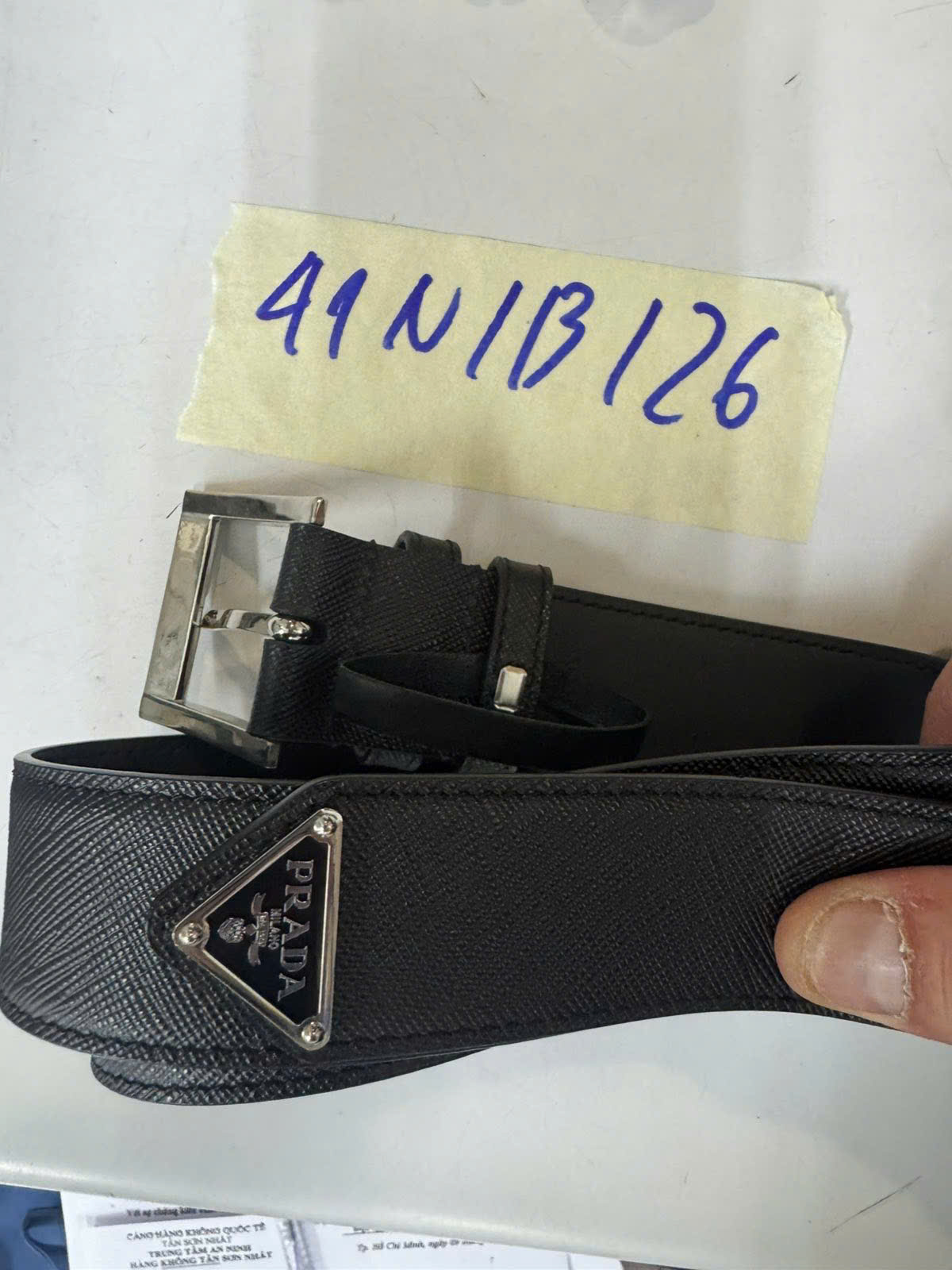 Ngày tiếp nhận: 10/01/2026 Mã hồ sơ: 41N2026B Mô tả: 01 dây thắt lưng da đen "Prada". |