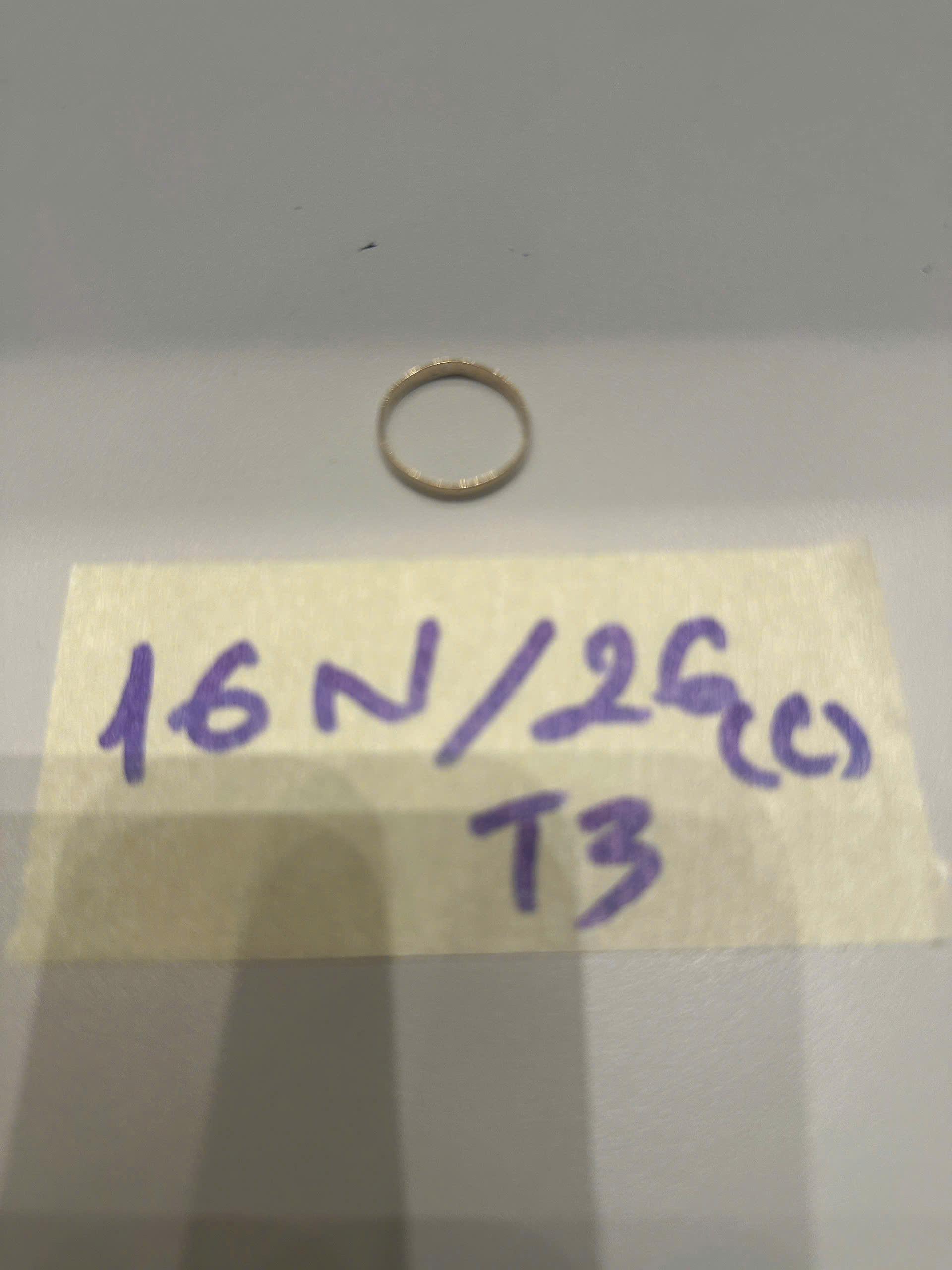 Ngày tiếp nhận: 11/01/2026 Mã hồ sơ: 16N2026C-T3 Mô tả: 01 nhẫn kim loại màu vàng khắc bên trong T3P. |