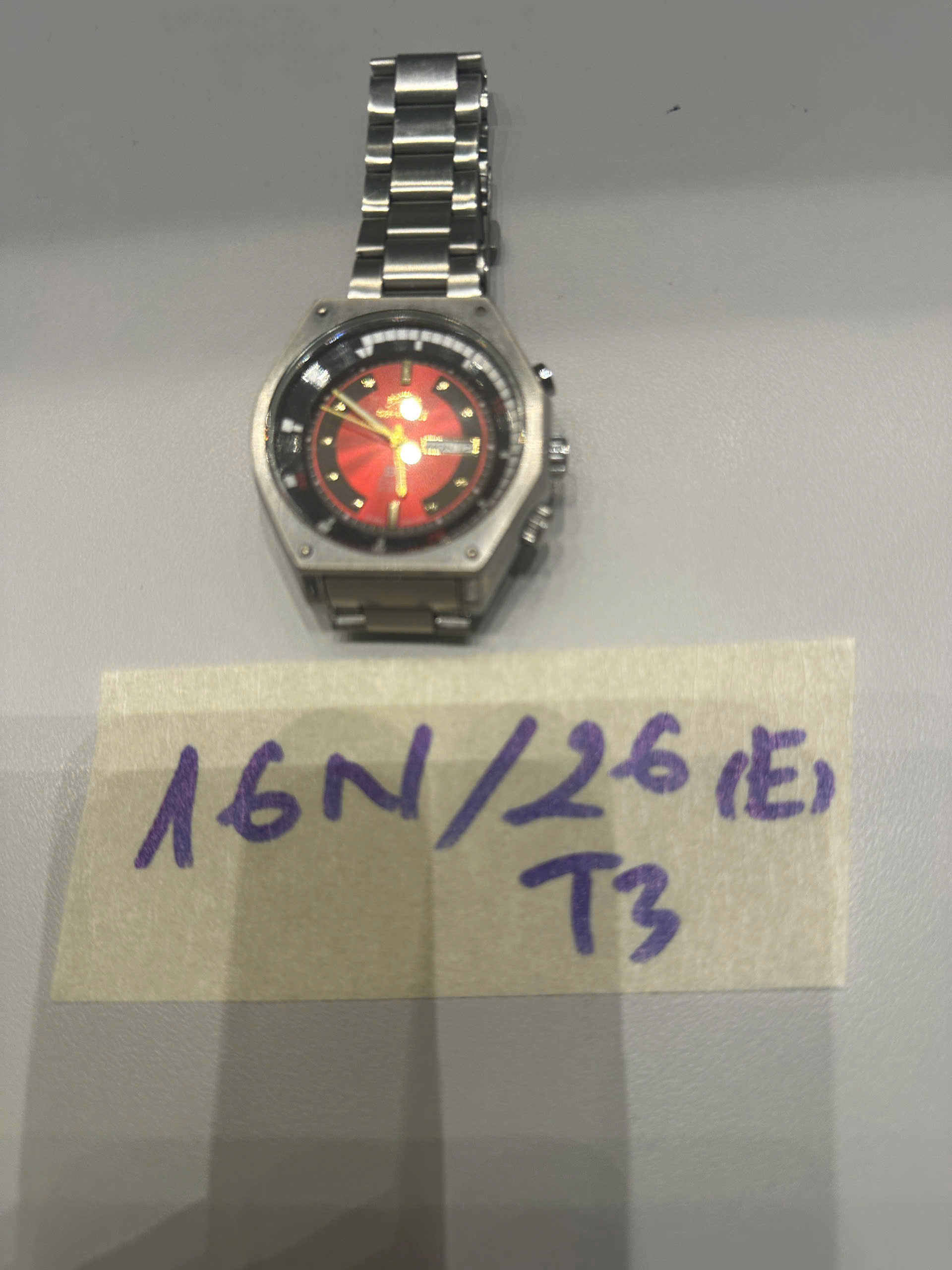Ngày tiếp nhận: 11/01/2026 Mã hồ sơ: 16N2026E-T3 Mô tả: 01 đồng hồ mặt tròn dây kim loại trắng ORIENT. |