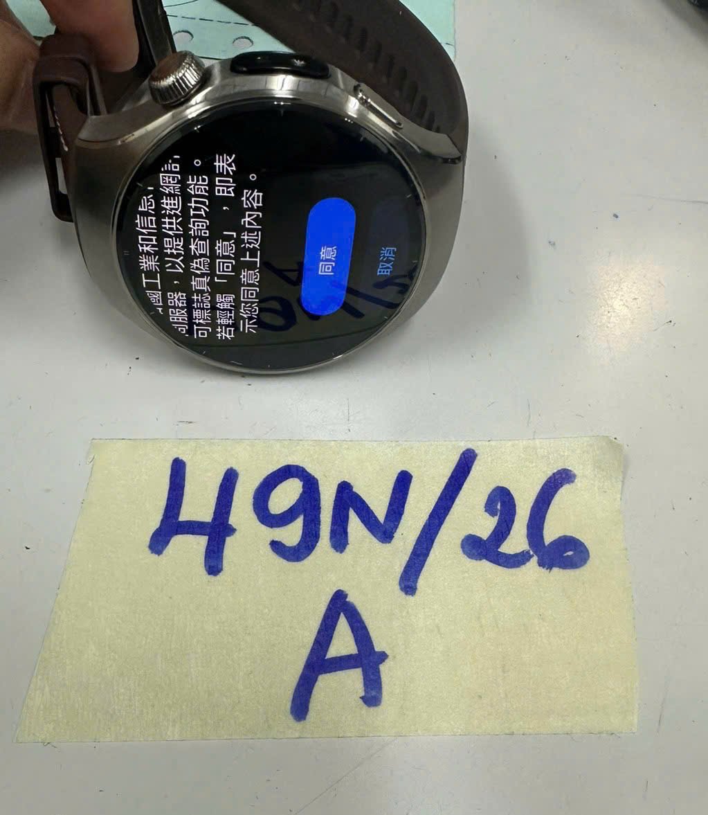 Ngày tiếp nhận: 11/01/2026 Mã hồ sơ: 49N2026A Mô tả: 01 đồng hồ điện tử mặt tròn xám HUAWEI, dây nhựa nâu. |