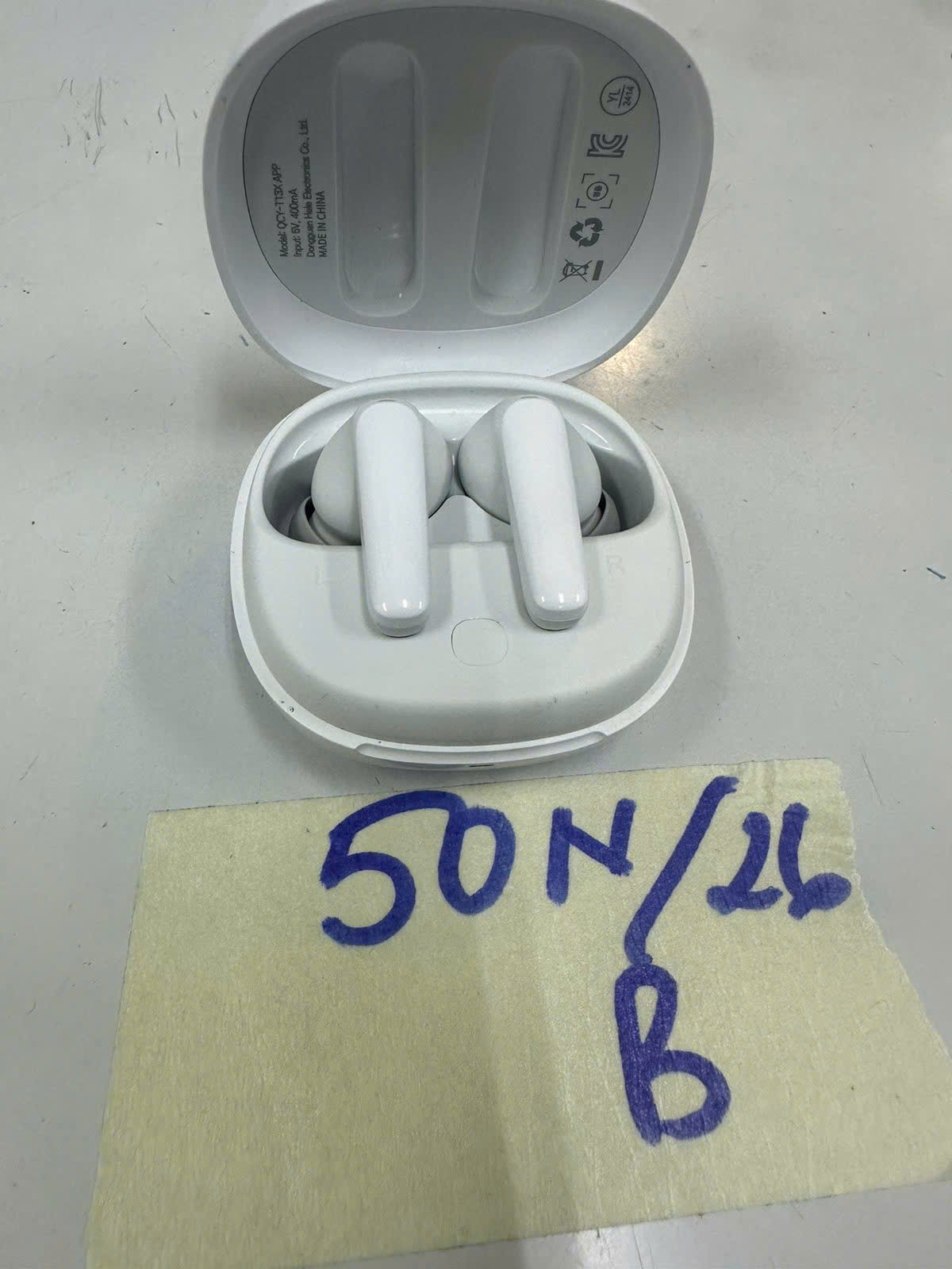 Ngày tiếp nhận: 11/01/2026 Mã hồ sơ: 50N2026B Mô tả: 01 tai nghe trắng logo QCY đầy đủ 02 tai nghe. |