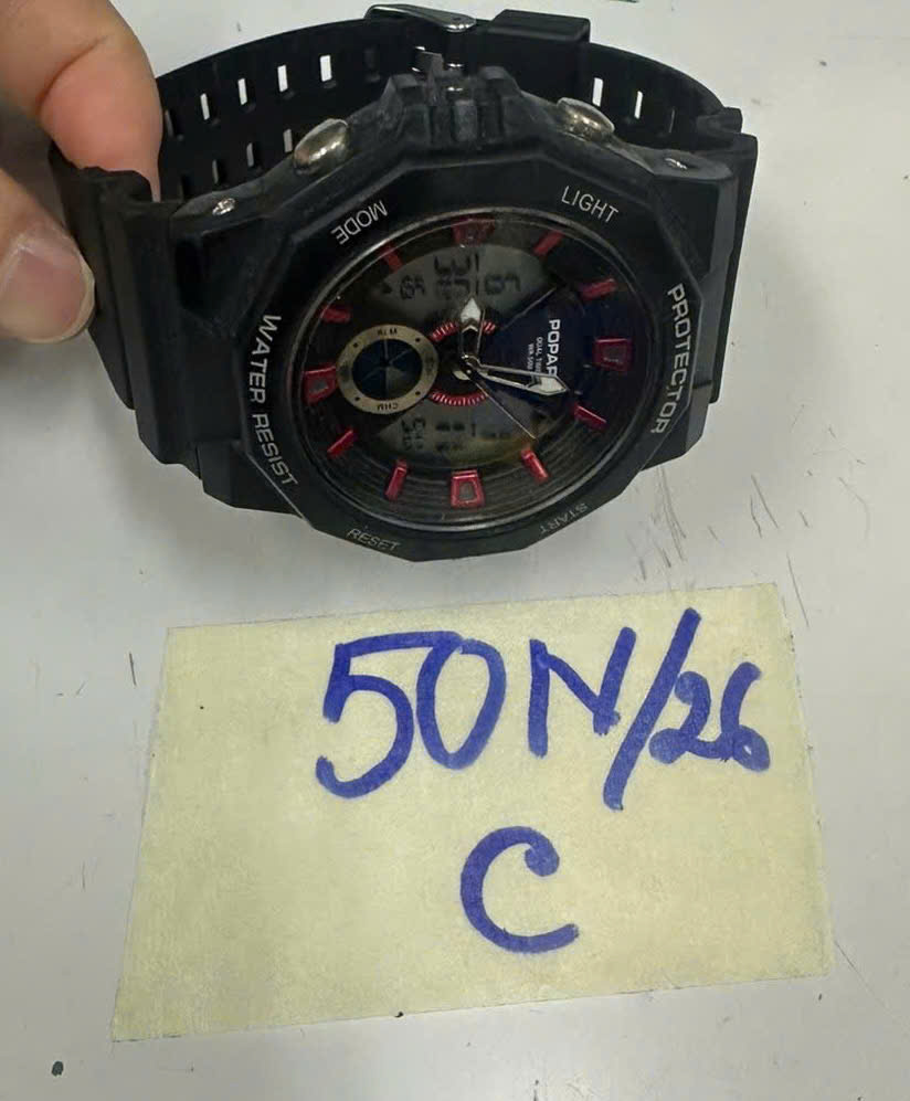 Ngày tiếp nhận: 11/01/2026 Mã hồ sơ: 50N2026A Mô tả: 01 đồng hồ kim đen POPART, dây nhựa đen. |