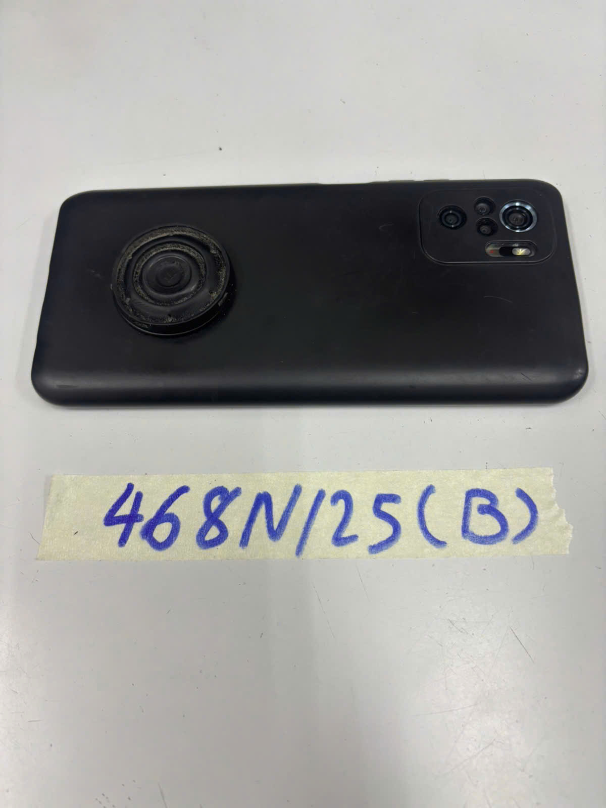 Ngày tiếp nhận: 10/03/2025 Mã hồ sơ: 468N2025B Mô tả: 01 điện thoại, mặt sau màu xanh dương, ốp lưng nhựa màu đen, mặt sau điện thoại có chữ "REDMI". |