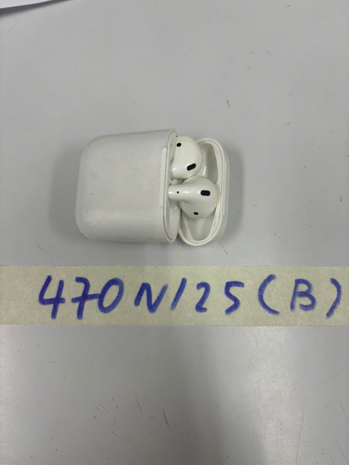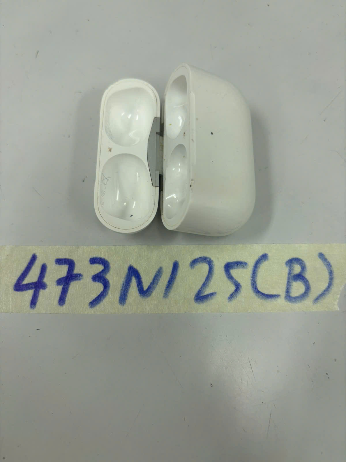 Ngày tiếp nhận: 10/03/2025 Mã hồ sơ: 473N2025B Mô tả: 01 hộp sạc tai nghe không dây màu trắng, không có tai nghe bên trong, mặt sau hộp sạc có chữ "Designed by Apple in California Assembled in China". |