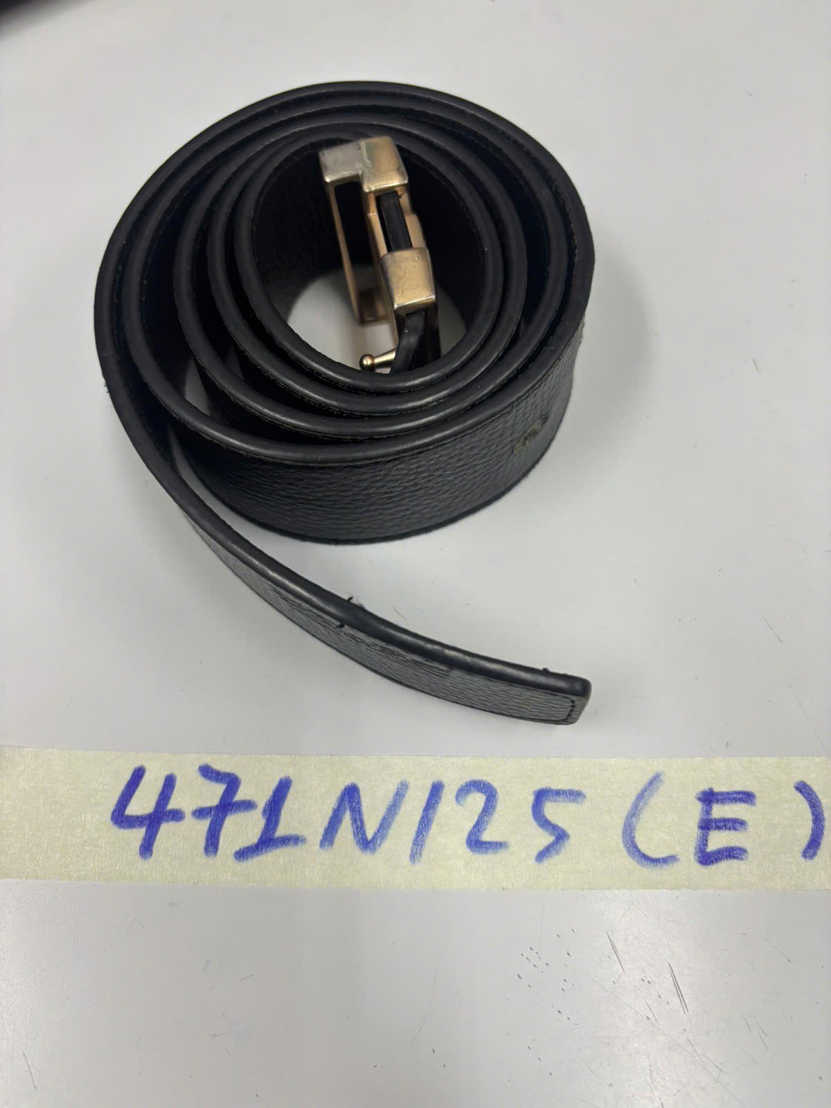 Ngày tiếp nhận: 10/03/2025 Mã hồ sơ: 471N2025E Mô tả: 01 thắt lưng màu da màu đen, thắt lưng có mặt logo "LV". |
