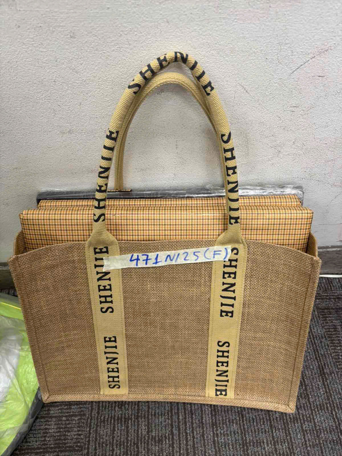 Ngày tiếp nhận: 10/03/2025 Mã hồ sơ: 471N2025F Mô tả: 01 túi màu da có chữ "SHENJIE" bên trong có: 03 (ba) bức tranh. |