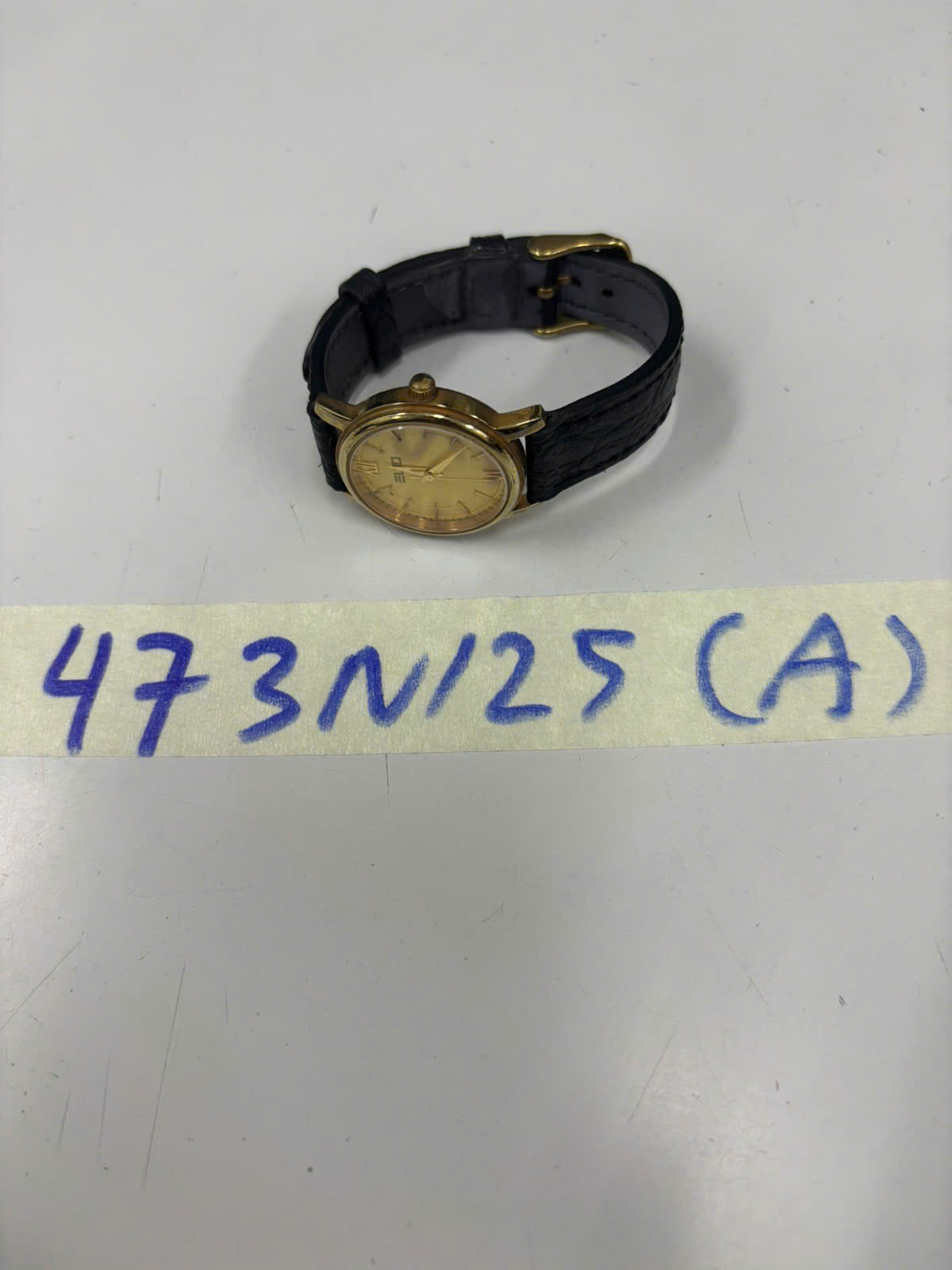 Ngày tiếp nhận: 10/03/2025 Mã hồ sơ: 473N2025A Mô tả: 01 đồng hồ mặt kim loại hình tròn màu vàng đồng, dây da màu đen, trên mặt đồng hồ có chữ "ELIO", mặt sau có chữ "MOVADO Swiss Quartz". |