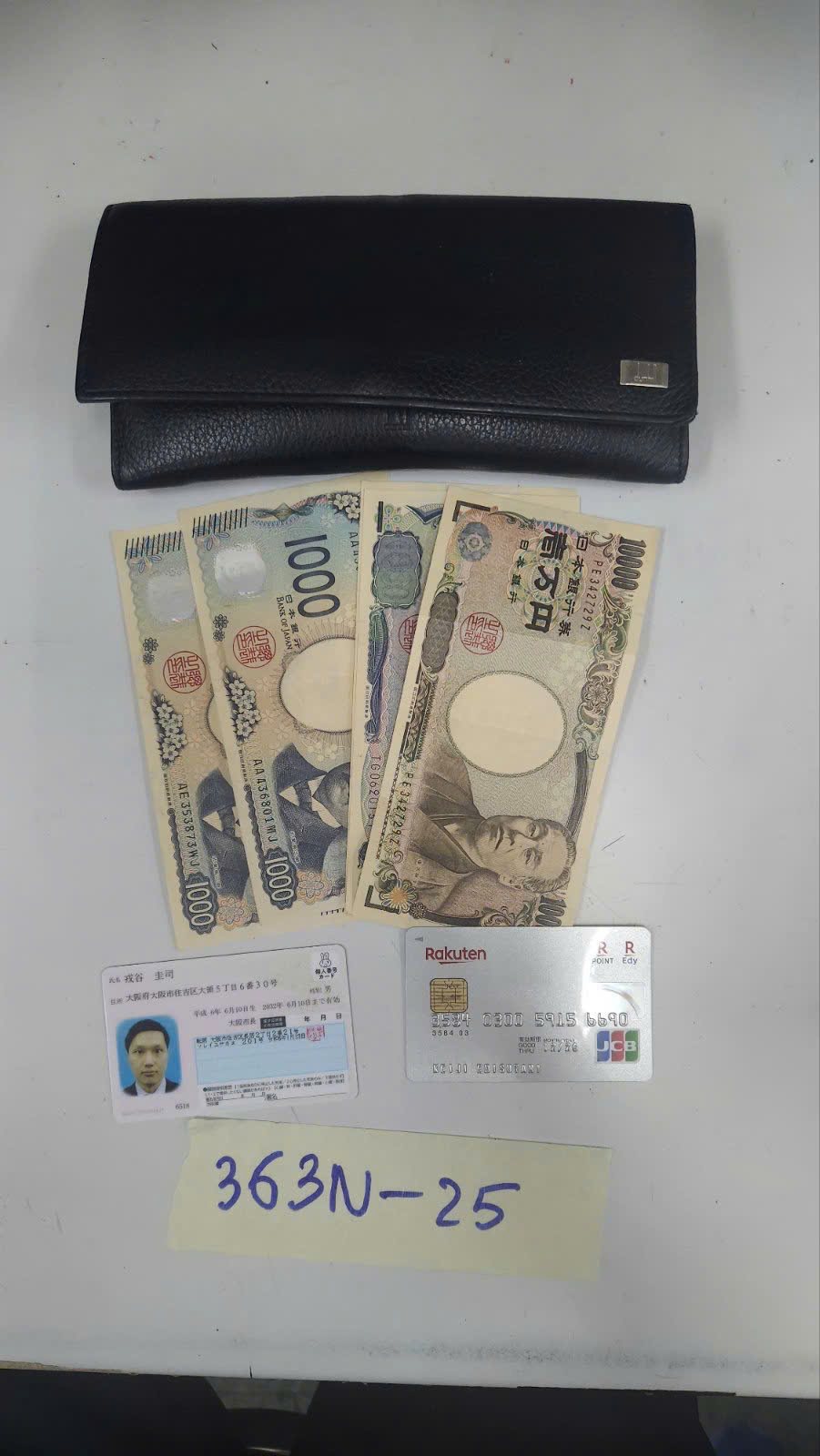 Ngày tiếp nhận: 21/02/2025 Mã hồ sơ: 363N2025 Mô tả: 01 ví da màu đen có thẻ cá nhân mang tên KEIJI EBISUTANI và 14.000 Yên Nhật. |