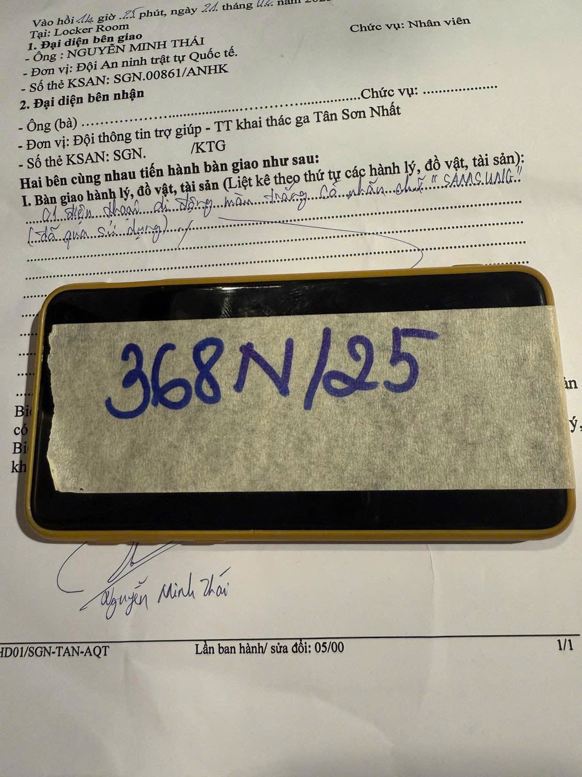 Ngày tiếp nhận: 21/02/2025 Mã hồ sơ: 371N2025C Mô tả: 01 Điện thoại SAMSUNG màu xám có số IMEI: 350186. |
