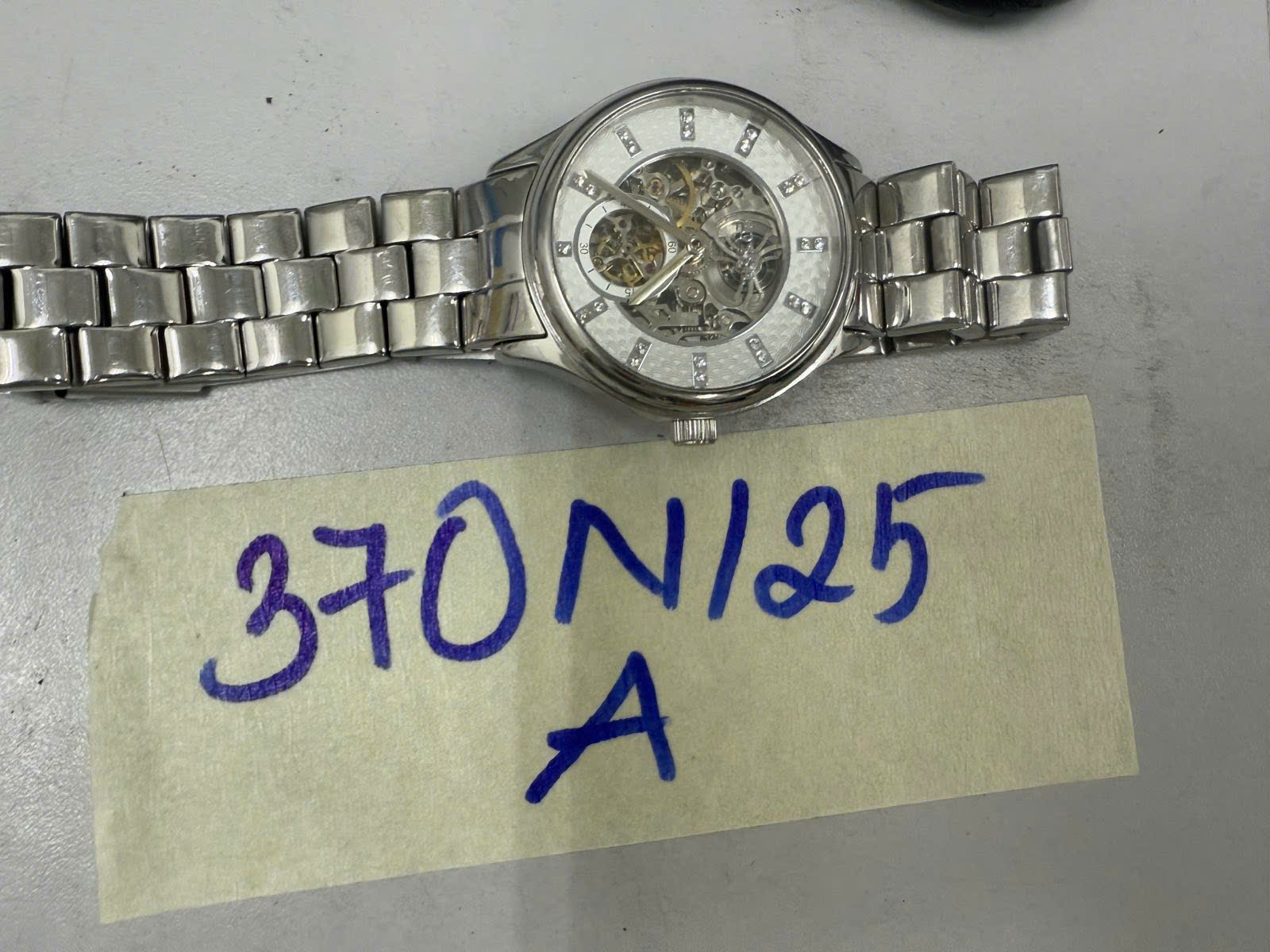 Ngày tiếp nhận: 21/02/2025 Mã hồ sơ: 370N2025A Mô tả: 01 đồng hồ đeo tay bằng kim loại màu trắng có chữ "FOSSIL", mặt đồng hồ hình tròn. |