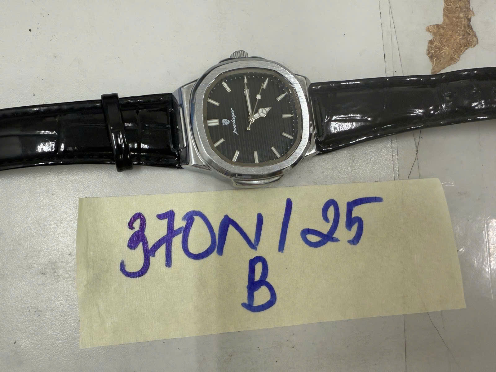 Ngày tiếp nhận: 21/02/2025 Mã hồ sơ: 370N2025B Mô tả: 01 đồng hồ đeo tay mặt hình vuông màu đen có logo chữ "poedagar", dây đồng hồ màu. |