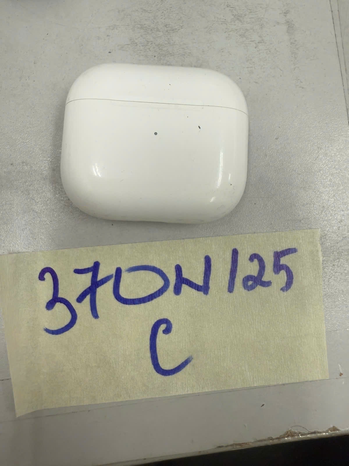 Ngày tiếp nhận: 21/02/2025 Mã hồ sơ: 370N2025C Mô tả: 01 bộ tai nghe không dây màu trắng (Airpod) (01 cốc sạc, 02 tai nghe trái phải. |