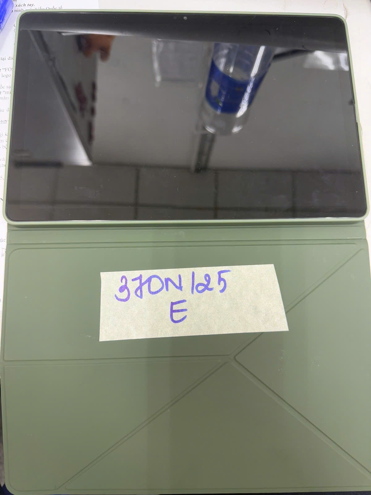 Ngày tiếp nhận: 21/02/2025 Mã hồ sơ: 370N2025E Mô tả: 01 máy tính bảng có logo chữ "SAMSUNG" màu đen, bao nhựa màu xanh rêu (s/n R9TXA003BRZ). |