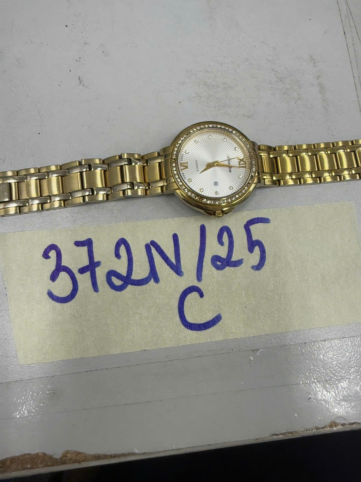Ngày tiếp nhận: 21/02/2025 Mã hồ sơ: 372N2025C Mô tả: 01 Đồng hồ Adriatica, dây kim loại màu vàng, viền đồng hồ đính đá màu trắng. |