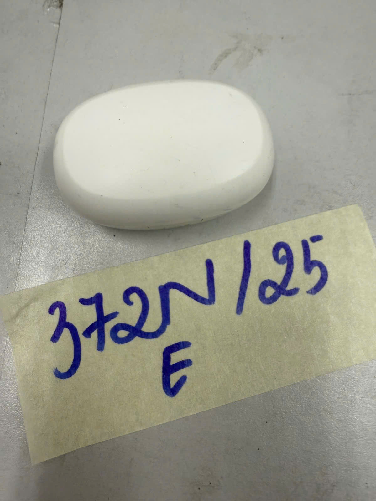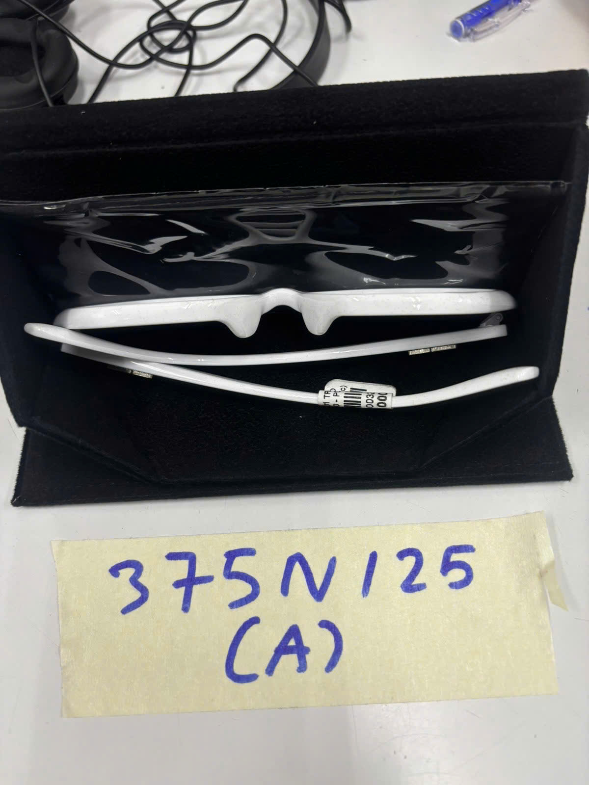 Ngày tiếp nhận: 21/02/2025 Mã hồ sơ: 375N2025A Mô tả: 01 Mắt kính màu trắng có chữ "PUCINI". |