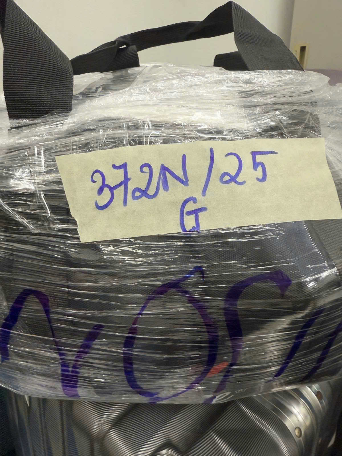 Ngày tiếp nhận: 21/02/2025 Mã hồ sơ: 372N2025G Mô tả: 01 Túi xách màu đen được quấn kín nilon, không xác định được đồ vật bên trong. |