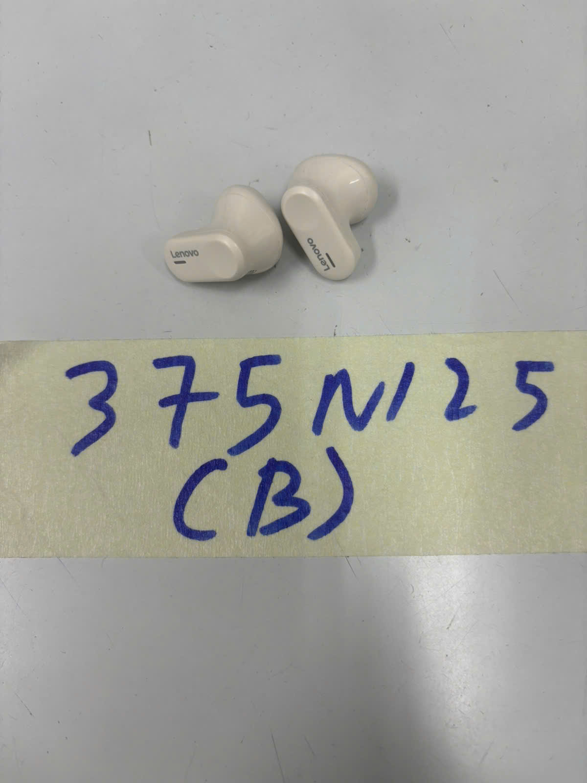 Ngày tiếp nhận: 21/02/2025 Mã hồ sơ: 375N2025B Mô tả: 01 Cặp tai nghe màu trắng có chữ "LENOVO". |