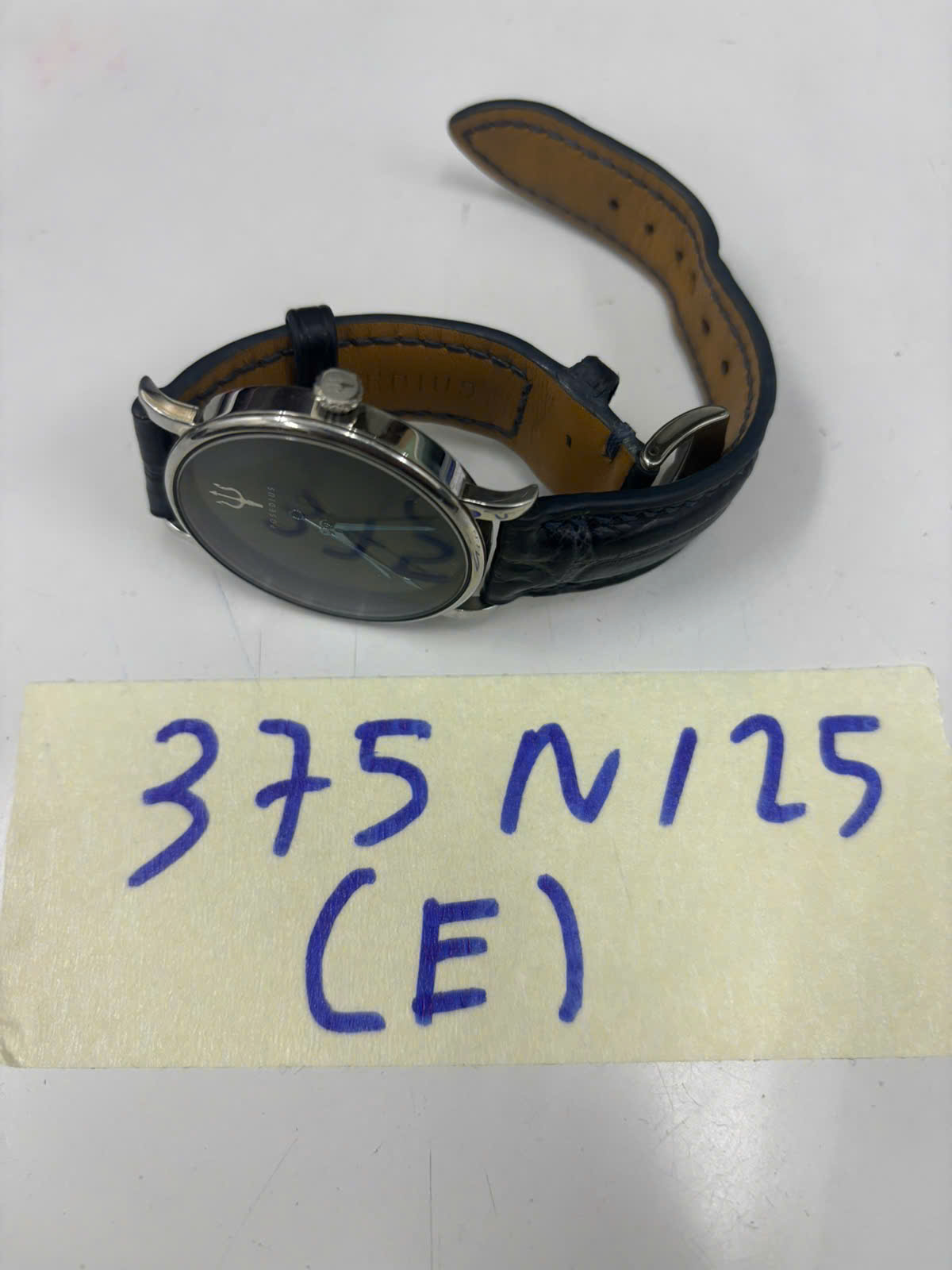 Ngày tiếp nhận: 21/02/2025 Mã hồ sơ: 375N2025E Mô tả: 01 Đồng hồ kim loại màu xanh đen, mặt tròn có chữ "POSEDIUS". |