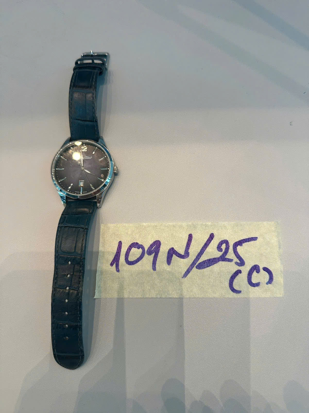 Ngày tiếp nhận: 30/11/2025 Mã hồ sơ: 109N2025C Mô tả: 01 đồng hồ mặt tròn kim loại, dây da xanh dương đậm chữ Mathey Tissot đã sử dụng. |
