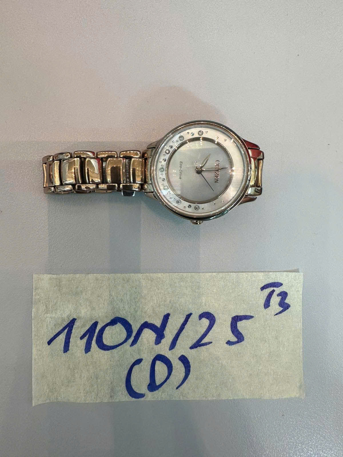 Ngày tiếp nhận: 01/12/2025 Mã hồ sơ: 110N2025D Mô tả: 01 Đồng hồ kim loại màu vàng có chữ CITIZEN. |