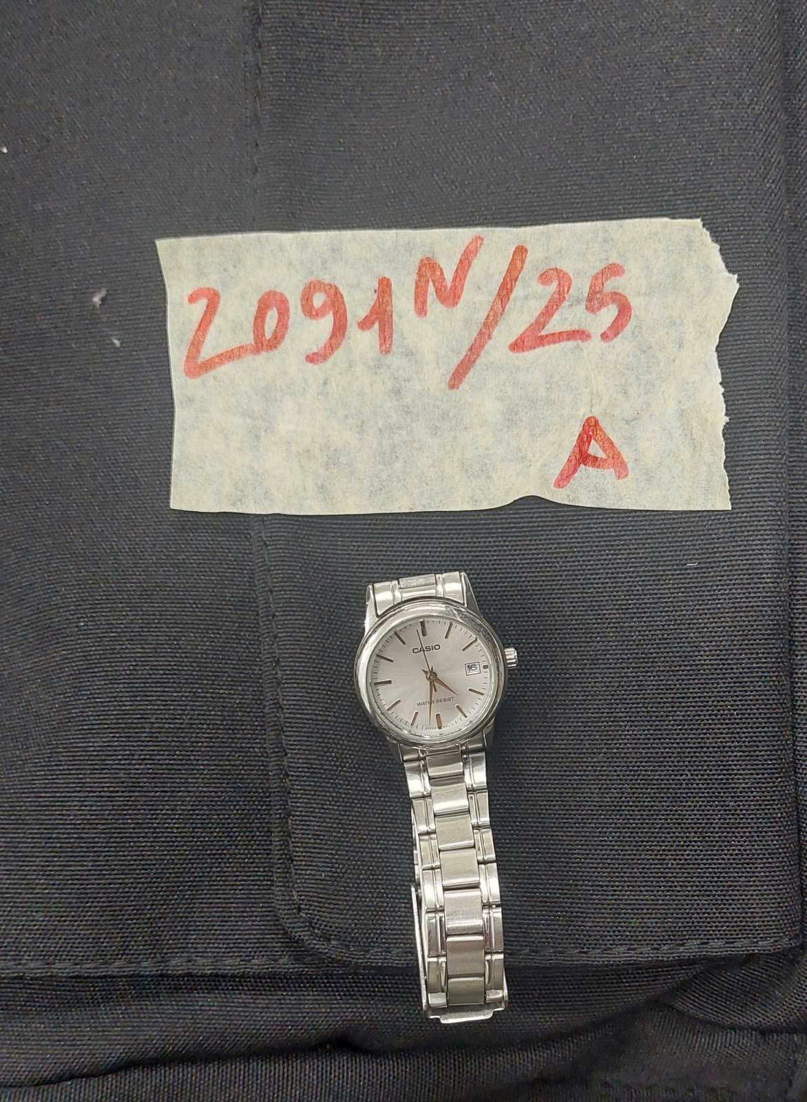 Ngày tiếp nhận: 30/11/2025 Mã hồ sơ: 2091N2025A Mô tả: 01 đồng hồ bằng kim loại mặt hình tròn có chữ "CASIO", dây đeo bằng kim loại màu bạc. |