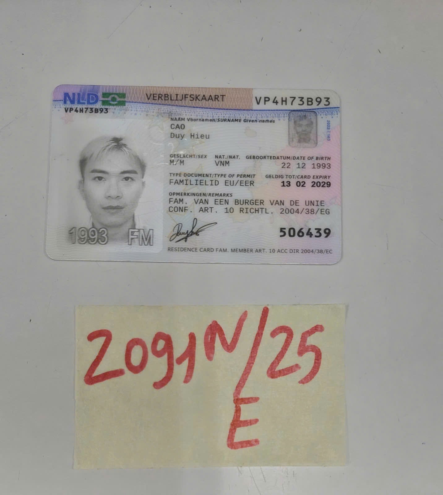 Ngày tiếp nhận: 30/11/2025 Mã hồ sơ: 2091N2025E Mô tả: 01 thẻ Residence Card Fam mang tên CAO DUY HIẾU. |