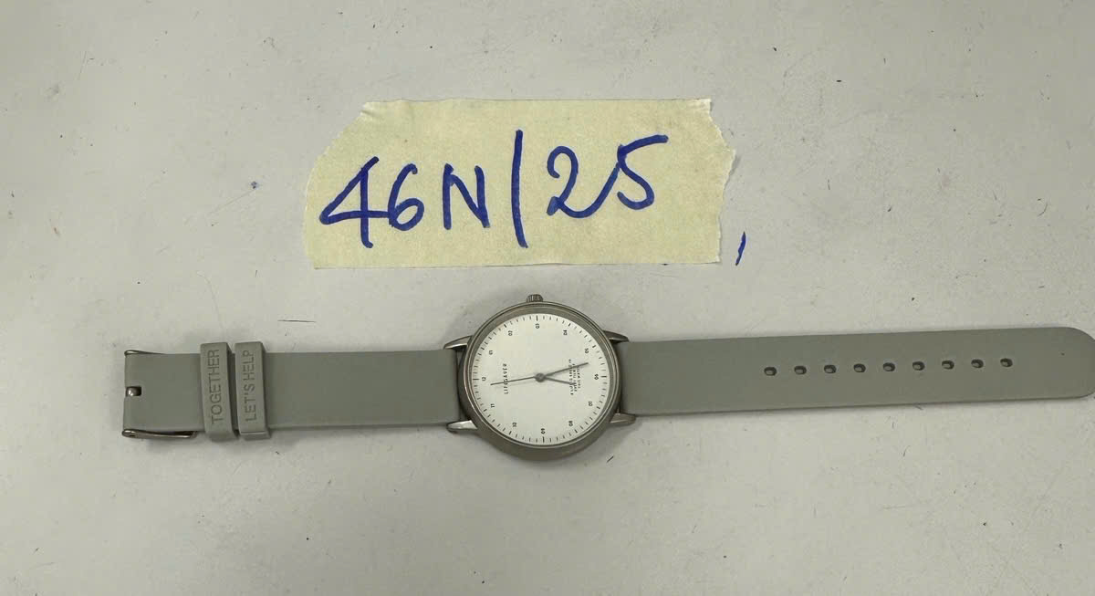 Ngày tiếp nhận: 07/01/2025 Mã hồ sơ: 46N2025 Mô tả: 01 đồng hồ màu xám, mặt đồng hồ bằng kim loại hình tròn có in logo chữ "LIFESAVER". |