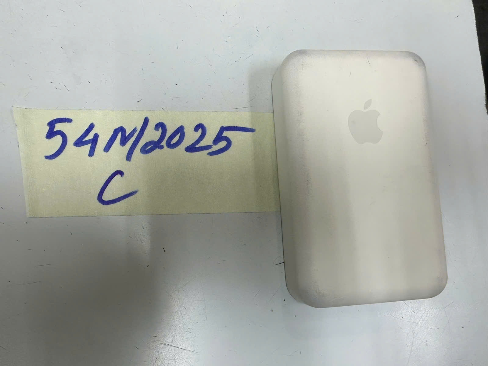 Ngày tiếp nhận: 08/01/2025 Mã hồ sơ: 54N2025C Mô tả: 01 cục sạc dự phòng màu trắng, đẳng sau có hình trái táo khuyết.. |