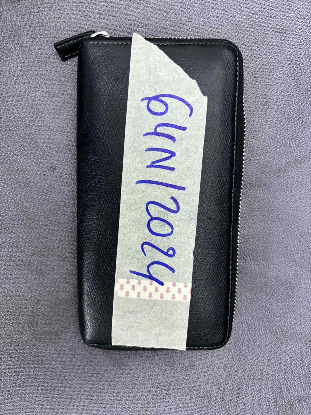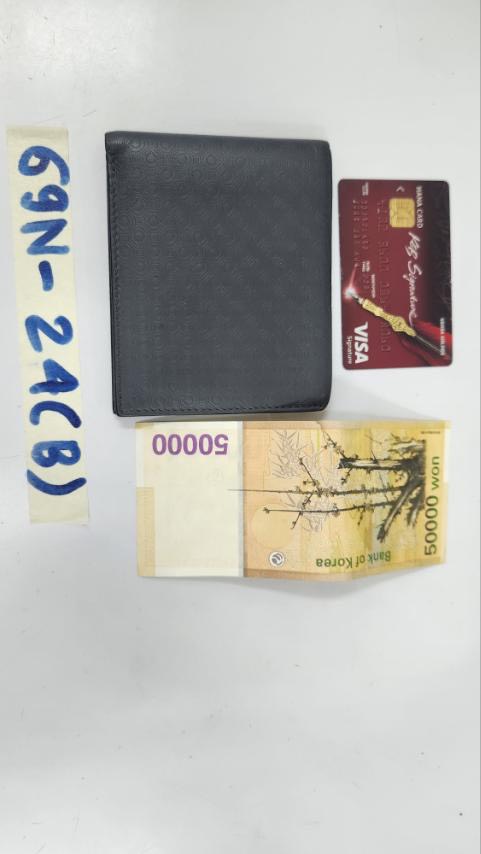 Ngày tiếp nhận: 12/01/2024 Mã hồ sơ: 69N2024B Mô tả: 01 bóp SALVATORE FERROGAMO màu xám, bên trong gồm có một thẻ ngân hàng và tờ tiền 50.000 won. Vị trí: An ninh soi chiếu quốc tế |