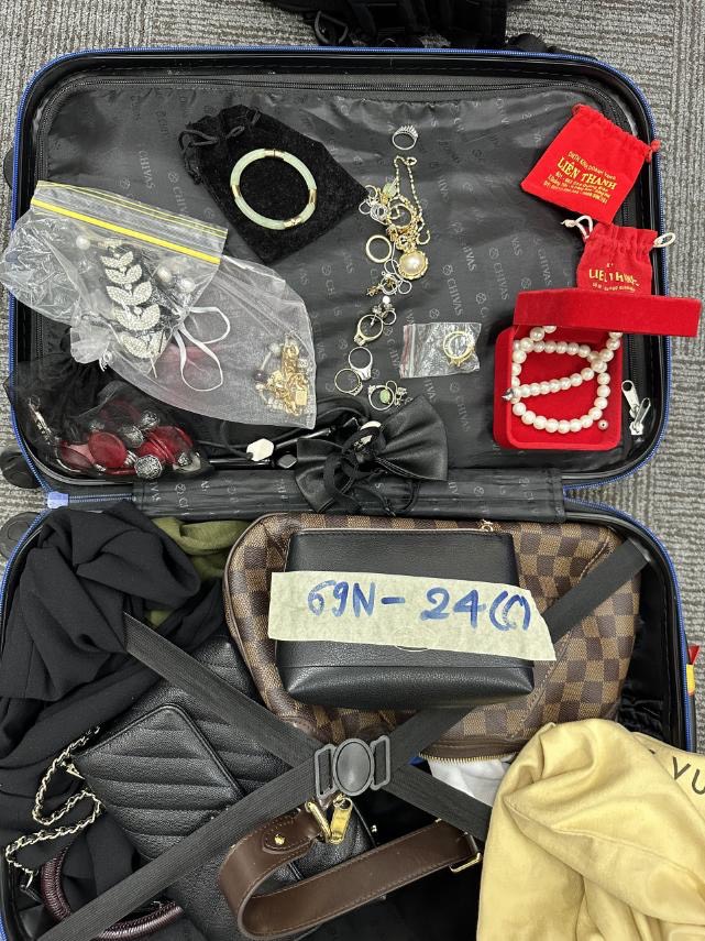Ngày tiếp nhận: 12/01/2024 Mã hồ sơ: 69N2024C Mô tả: 01 valy hiệu CHIVAS bên trong có quần áo, 01 túi hiệu LOUIS VUITTON, 01 túi xách hiệu CHANEL , một số bộ trang sức màu vàng và màu bạc. Vị trí: An ninh soi chiếu quốc tế |