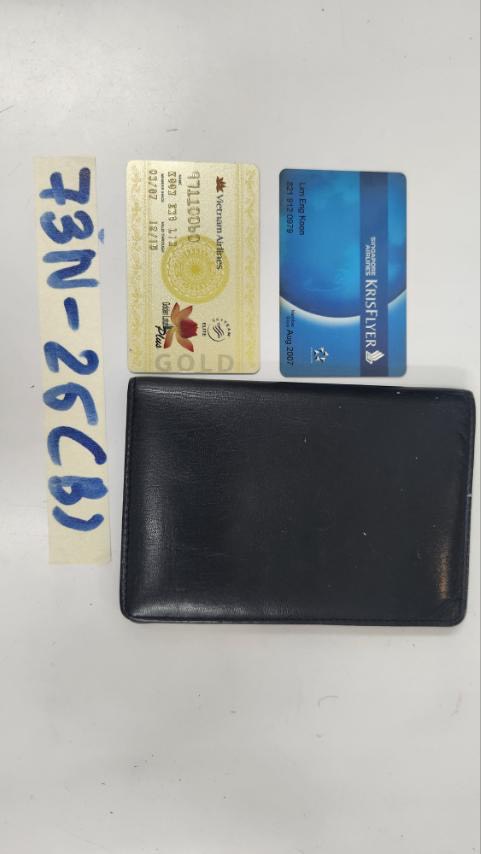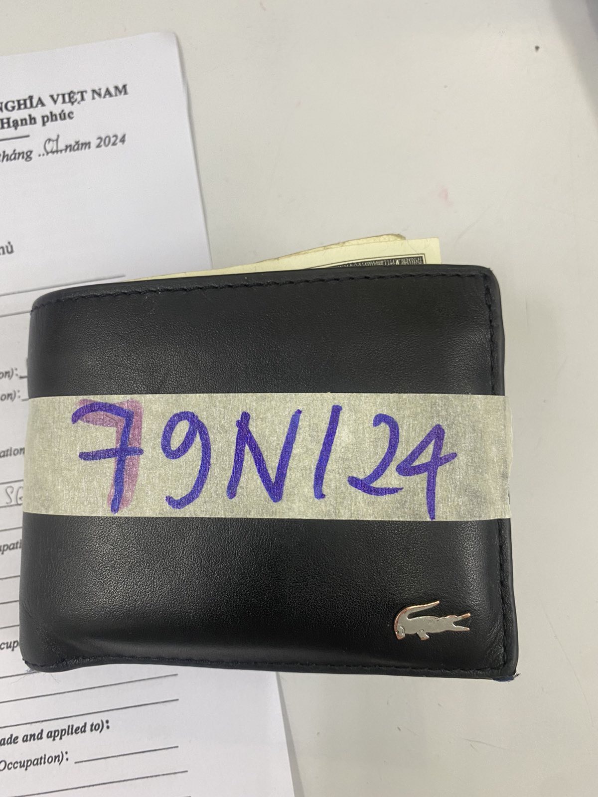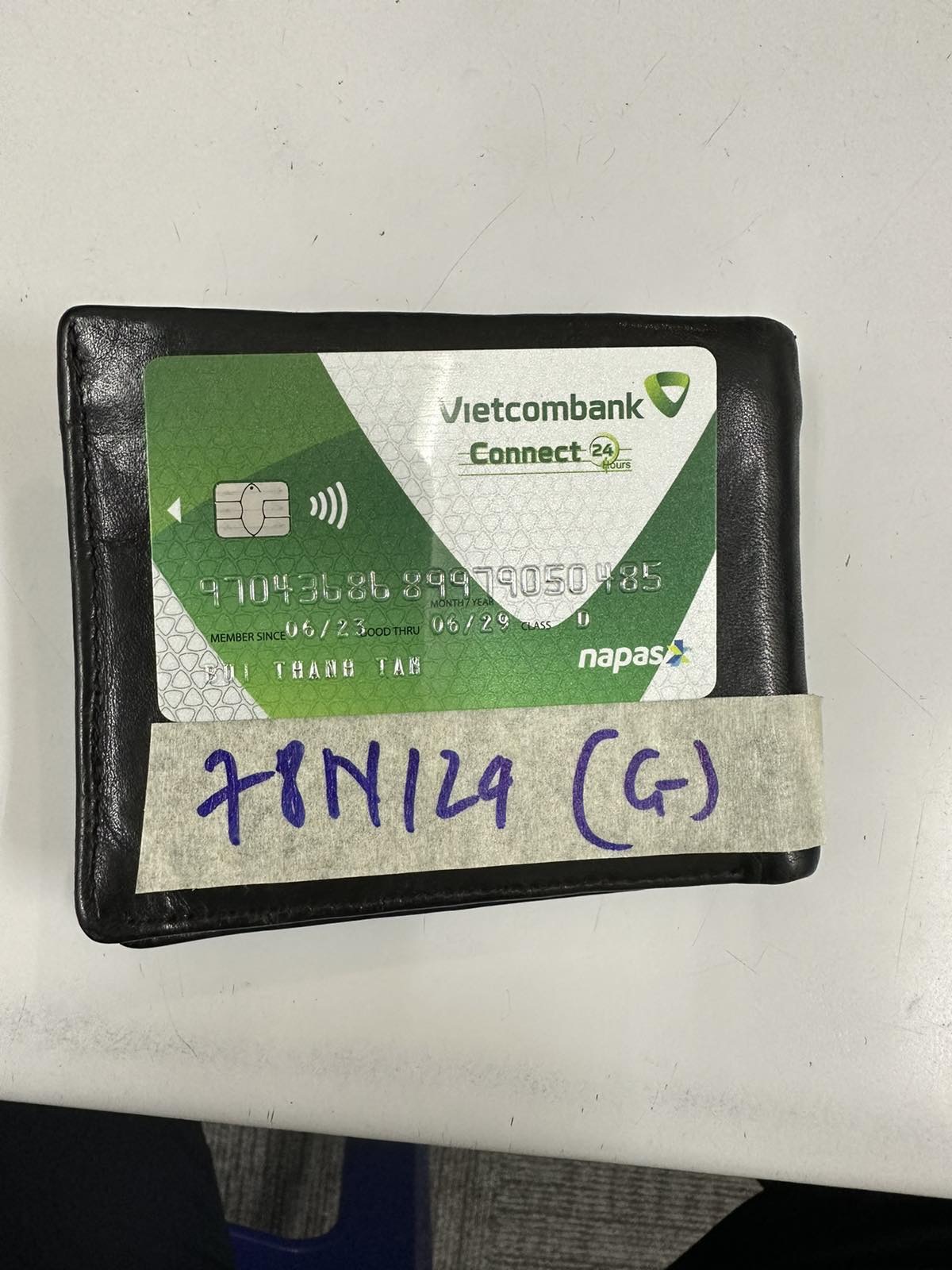 Ngày tiếp nhận: 13/01/2024 Mã hồ sơ: 78N2024G Mô tả: 01 ví da màu đen bên trong có thẻ ngân hàng và tiền có mệnh giá 1 tờ 500.000VNĐ, 01 tờ 100.000VNĐ, 01 tờ 50.000VNĐ, 01 tờ 10.000VNĐ, 01 tờ 5.000VNĐ, 02 tờ 2.000VNĐ và 01 tờ 1000won. Vị trí: An ninh soi chiếu quốc nội |