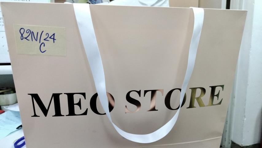 Ngày tiếp nhận: 14/01/2024 Mã hồ sơ: 82N2024C Mô tả: 01 túi giấy màu hồng có chữ MEO STORE đựng hộp giấy chứa quần áo, 01 băng đô cài tóc và 02 bịch hạt điều. Vị trí: An ninh soi chiếu quốc nội |