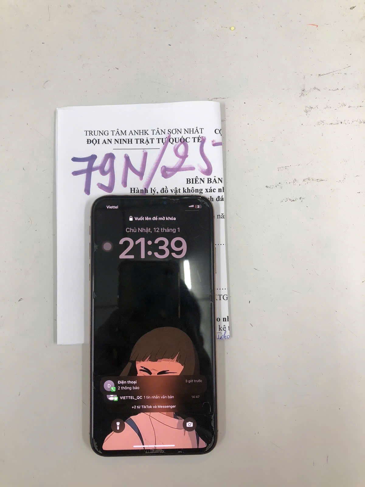 Ngày tiếp nhận: 13/01/2025 Mã hồ sơ: 84N2025C Mô tả: 01 balô màu đen bằng vải, bên trong gồm: 01 (một) pin sạc dự phòng màu xanh,01 (một) vé lên tàu mang tên TANG/JANGNAN, 01 (một) số có bìa đó in chữ 'Houschold Register", 02 (hai) sổ bìa đỏ bên trong có tên "HUYNH THI HOANG". |