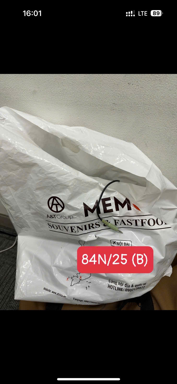 Ngày tiếp nhận: 13/01/2025 Mã hồ sơ: 84N2025A Mô tả: 01 túi vải màu nâu, bên trong gồm một só quần áo, bánh kẹo, vật dụng cá nhân đã qua sử dụng, 01 (một) củ sạc và dây sạc màu trắng. |