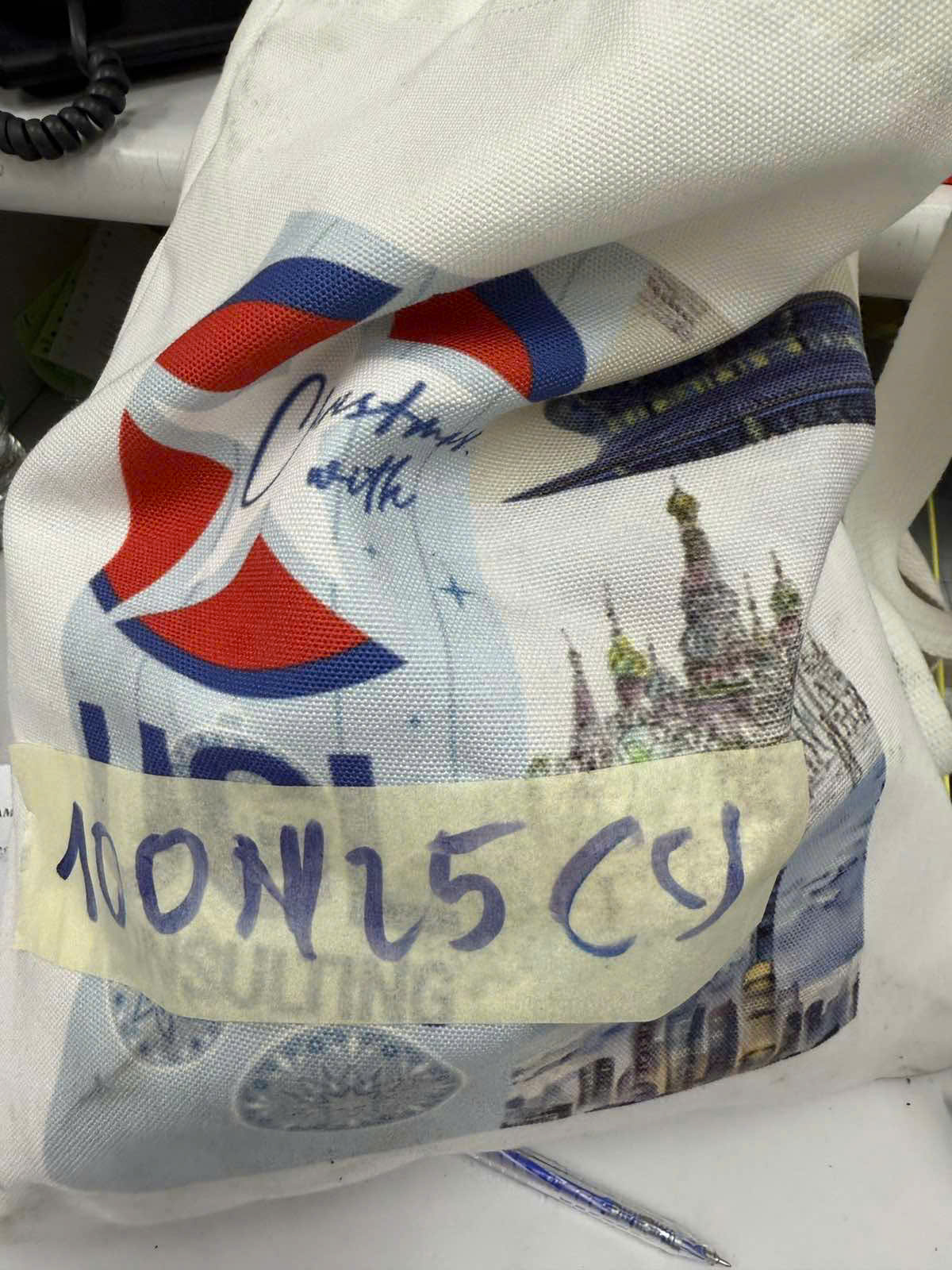 Ngày tiếp nhận: 15/01/2025 Mã hồ sơ: 100N2025C Mô tả: 01 Túi xách tay màu trắng có chữ UGL CONSULTING chứa: một vài bộ quần áo. |