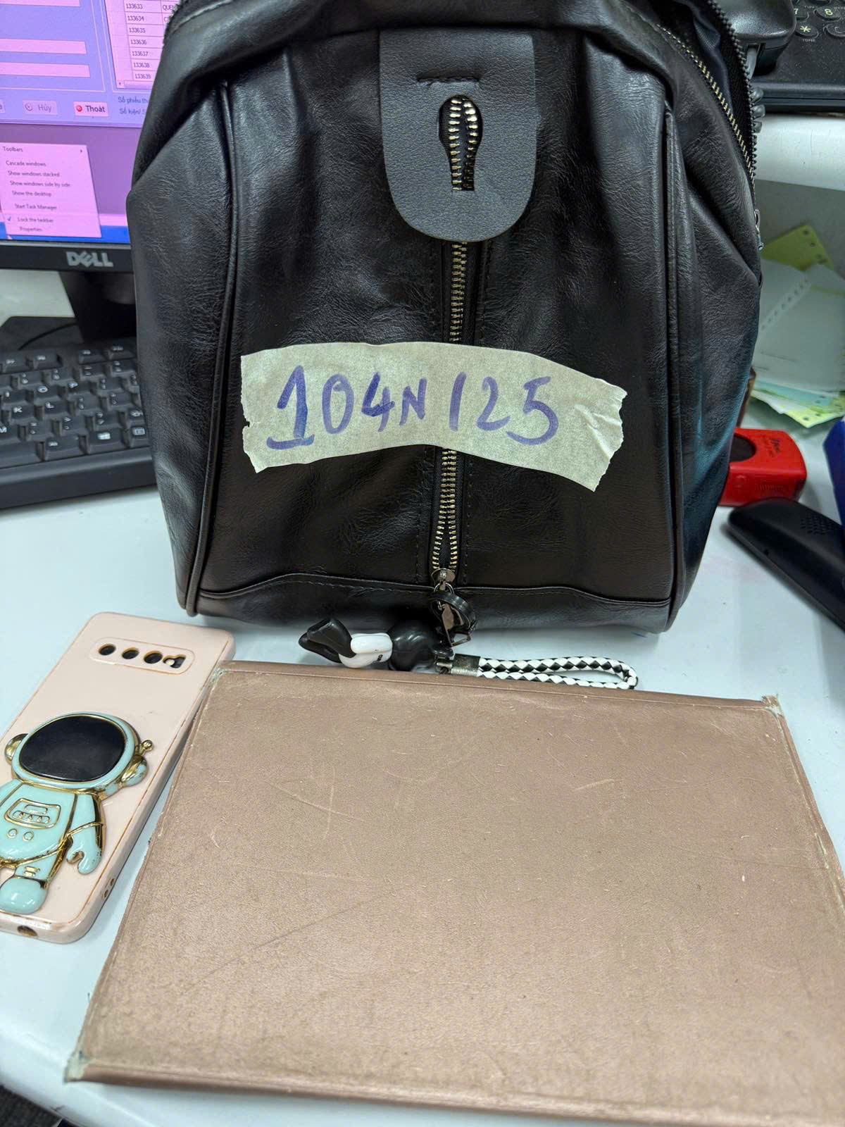 Ngày tiếp nhận: 15/01/2025 Mã hồ sơ: 104N2025 Mô tả: 01 Ba lô bằng da màu đen có 01 máy tính bảng Samsung vỡ màn hình, 01 điện thoại Samsung tất cả đều qua sử dụng. |