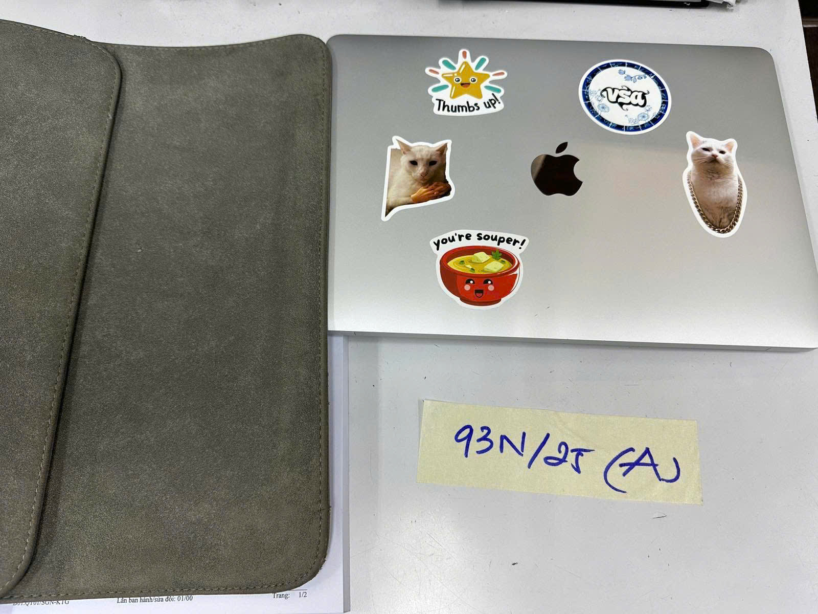 Ngày tiếp nhận: 14/01/2025 Mã hồ sơ: 93N2025A Mô tả: 01 laptop màu trắng logo quả táo, bọc laptop xám. |