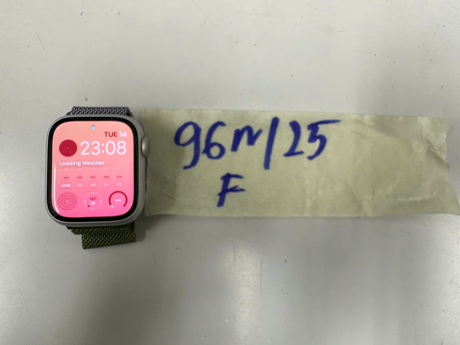 Ngày tiếp nhận: 14/01/2025 Mã hồ sơ: 96N2025F Mô tả: 01 đồng hồ apple watch serial 8 dây kim loại màu xanh rêu và màu tím. |