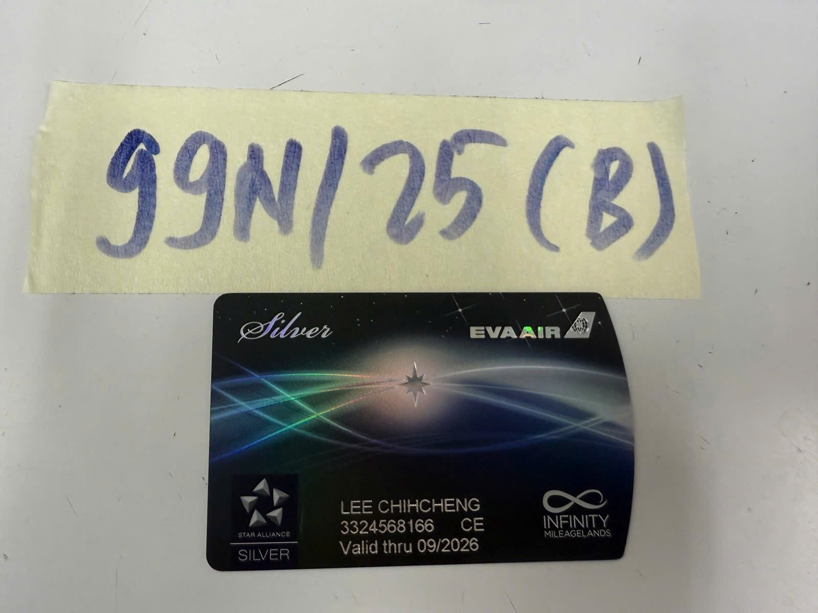 Ngày tiếp nhận: 15/01/2025 Mã hồ sơ: 99N2025B Mô tả: 01 thẻ STAR ALLIANCE SILVER EVAAIR tên LEE CHIHCHENG 3324568166 Valid thru 09/2026. |
