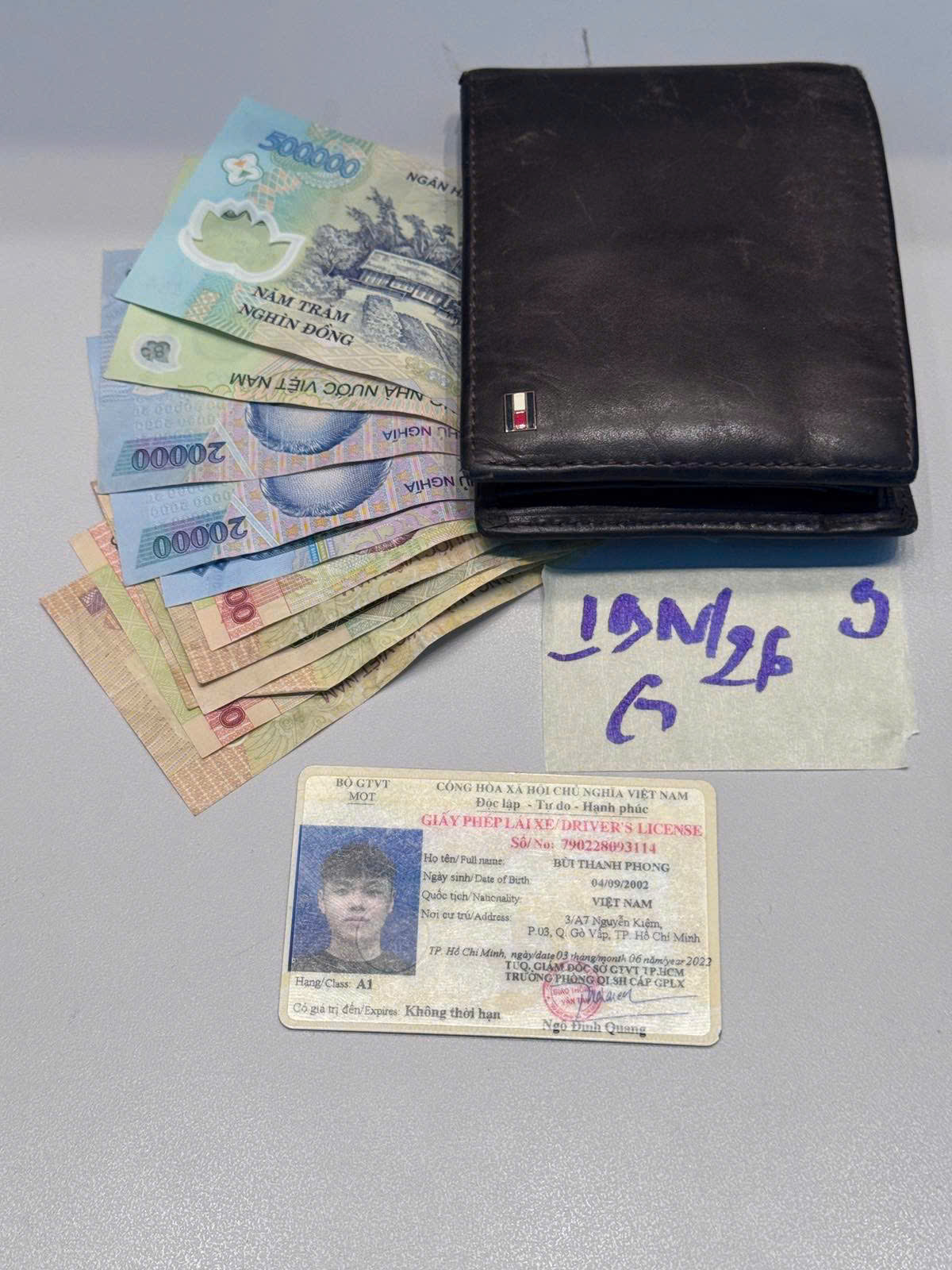 Ngày tiếp nhận: 14/01/2026 Mã hồ sơ: 19N2026G-T3 Mô tả: 01 bóp da màu nâu có tên BÙI THANH PHONG. |